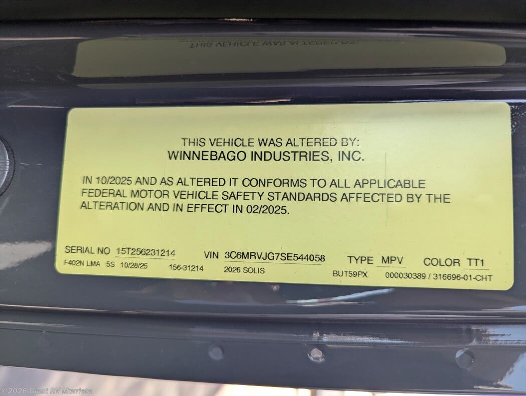 Request More Info on this 2026 Winnebago Solis 59PX Offered for sale by Giant RV