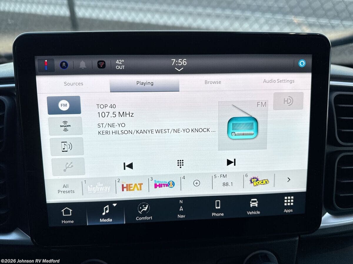 Features Include: 3.6L V6 Gas Engine, 280 HP, 180-Amp Alternator, 4-Wheel ABS Brakes, 3500# Hitch, Crosswind Assist, Power Windows, 12v Power Points, Side Screen Door, Rear Screen Door, Entry Assist Bar, Tinted Coach Windows, LED Ceiling Lights, Reading Lights, Below Floor Storage, Ladder, Laminate Countertops, Stainless Steel Sink, Spice Rack, Systems Center, Slat Bed System, Wet Bath, Bathroom Mirror, Flexible Shower Head, 30-Amp Service Cord, LP Tank with Gauge, Eco-Hot Water System, 10-Foot Sewer Hose, Outside Wash Station