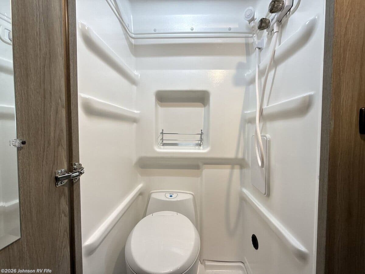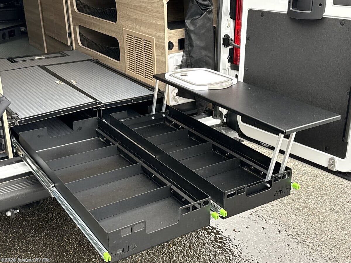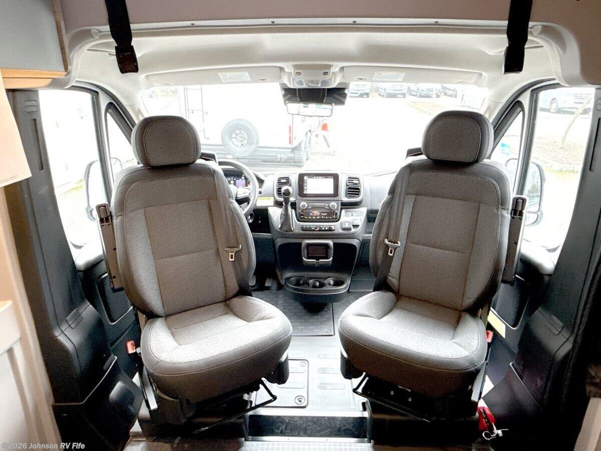 The 2026 Winnebago Solis NPF is a versatile and modern Class B recreational vehicle designed for adventure seekers and comfort lovers alike. Built on the reliable Ram ProMaster chassis, this RV combines robust performance with a host of features to ensure a smooth and enjoyable journey. Under the hood, the Solis NPF is powered by a 3.6L V6 gas engine, delivering 280 horsepower through a 9-speed automatic transmission. This setup is complemented by a 180-amp alternator and all-terrain tires, making it well-suited for various driving conditions. The vehicle also includes a 3500-pound hitch with a harness connector, enhancing its towing capabilities. Safety is a priority in the Solis NPF, featuring: - Crosswind Assist - Full-Speed Forward Collision Warning - Pedestrian Automatic Emergency Braking - Post Collision Braking The cab is designed for convenience and comfort, offering: - Power door locks with remote - Power windows - Front and side window privacy panels - Slide swivel recline adjustable cab seats - Driver and passenger airbags - 12v power points - Touchscreen radio with rearview monitor - Navigation and USB ports - Push button start - Electric power steering - Steering wheel controls - Power defrost side-mirrors - Cruise control Inside, the living space is thoughtfully designed to maximize comfort and functionality. Features include: - Aluminum running board pet loop - Porch light and driver side service light - Side and rear screen doors - Rod and privacy screen - Entry assist bar - Heavy-duty vinyl flooring with a removable padded floor mat - Tinted coach windows with zipped coverings - LED ceiling lights and reading lights - Removable pedestal table - Below floor storage and MOLLE panel, galley storage pack The dining area is equipped with: - Dinette seating with seatbelts and a child seat tether anchor - Laminate topographical countertop with a pull-out counter extension - Stainless steel sink and spice rack - 12v 3cf refrigerator freezer - 2-burner cooktop with glass cover - SmartSpace overland drawer For electronics, the Solis NPF includes: - Systems monitor panel - LP CO and smoke detectors - 110v, 12v, and USB charging ports Sleeping arrangements are comfortable and flexible, featuring: - Pop-top sleep system with a sleeping ladder - Murphy+ bed with storage access - Slat bed system - Deluxe power vent fan The bathroom is compact yet functional, offering: - Wet bath (31x24 inches) - Bathroom mirror - Shower surround with curtain - Flexible shower head - Removable clothes rod - Swiveling cassette toilet Mechanically, the Solis NPF is equipped with: - Two Group 31 AGM deep cycle batteries - Battery disconnect switch - Solar panel with controller and 220w flexible surface solar panel - 30-amp service cord and 55-amp converter charger - Ground fault interrupter - LP tank with gauge - 13.5k AC directional ducts - Truma Combi Eco heating system - Eco-hot water system - Water center control panel - Heated drainage system - 10-foot sewer hose - Outside wash station The 2026 Winnebago Solis NPF is a well-rounded RV that combines performance, safety, and comfort, making it an ideal choice for those looking to explore the open road with all the amenities of home. ??