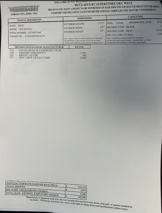 Request More Info on this 2026 Winnebago Solis Pocket 36A Offered for sale by McClain's RV Oklahoma City