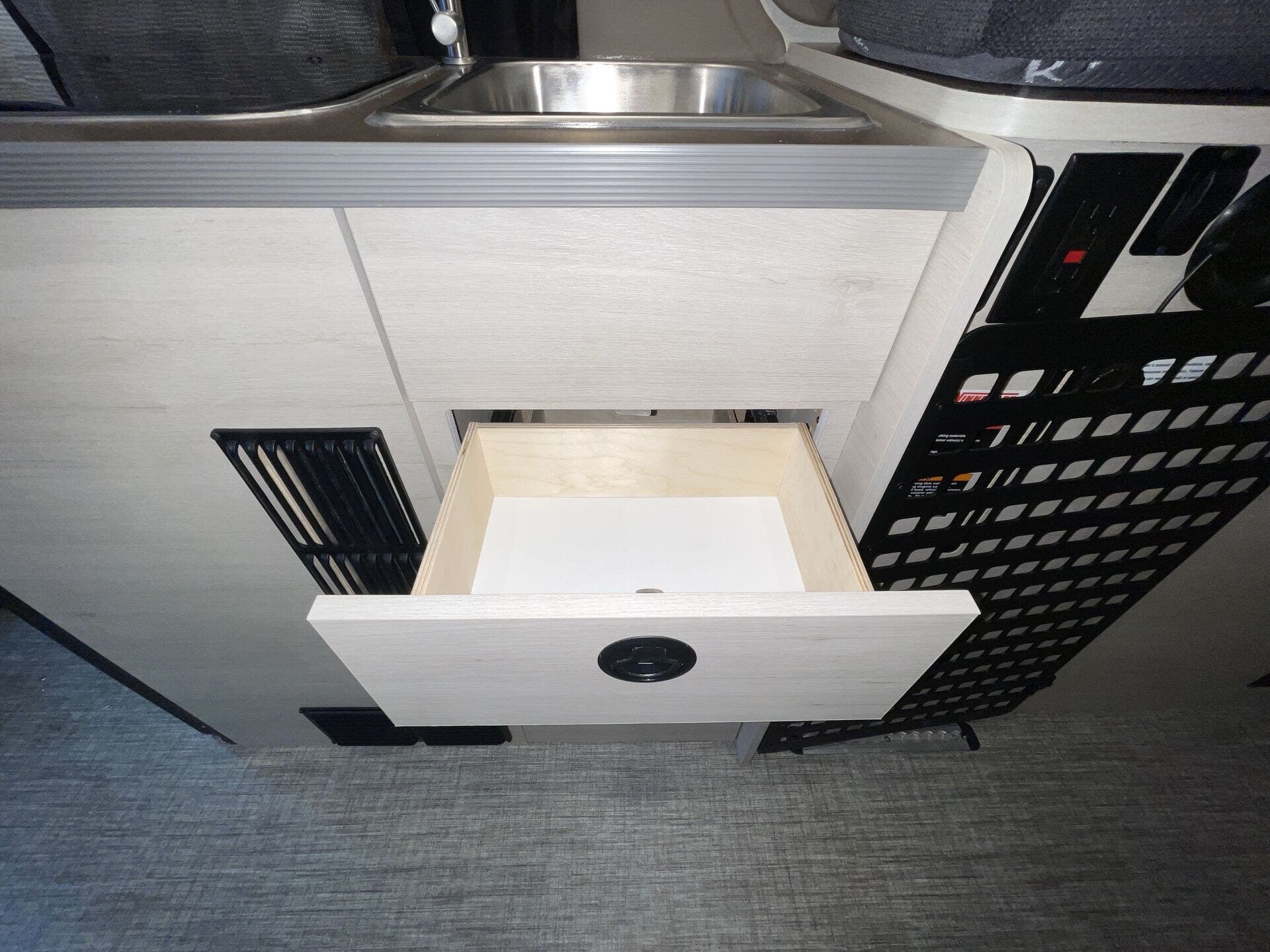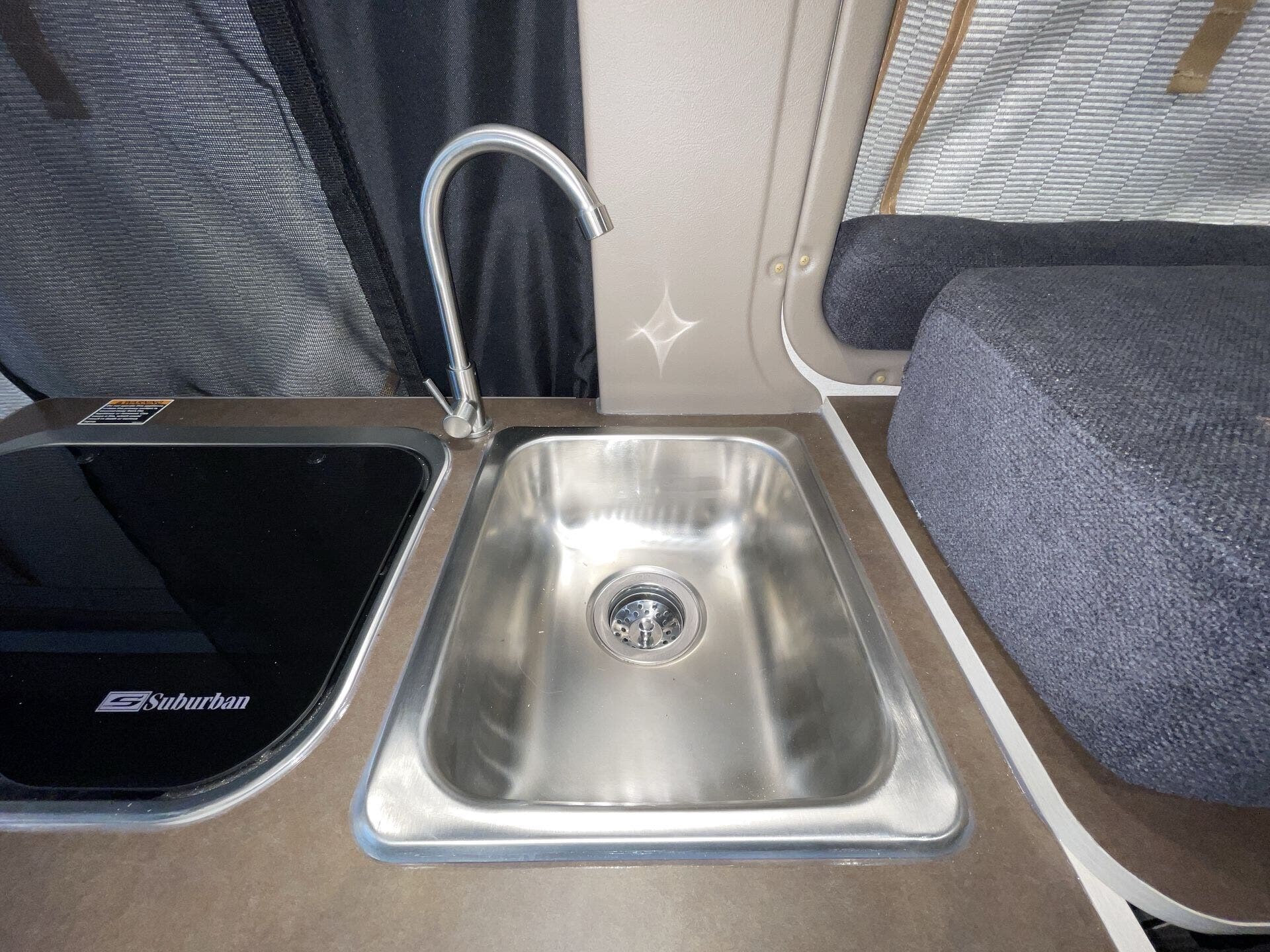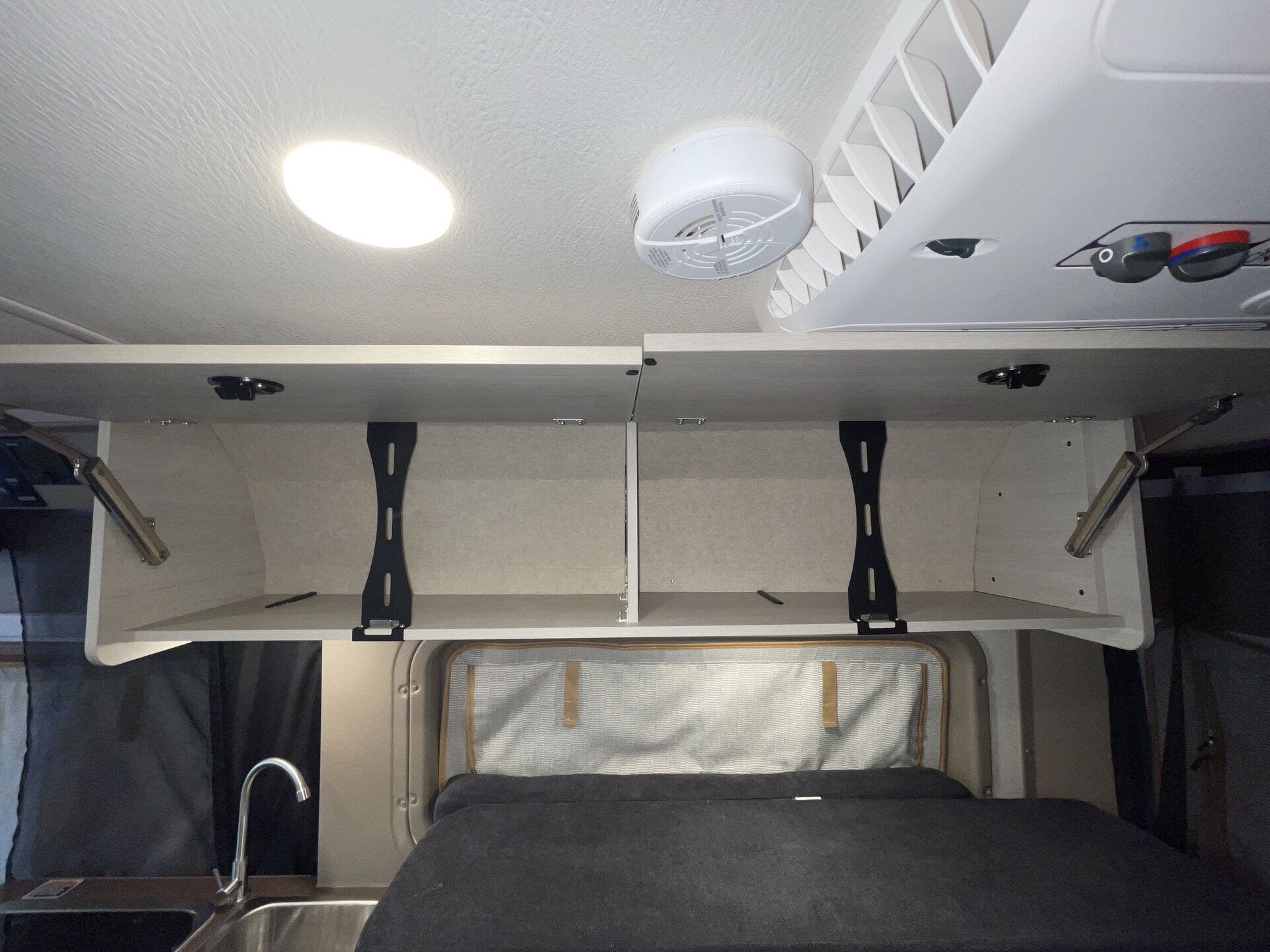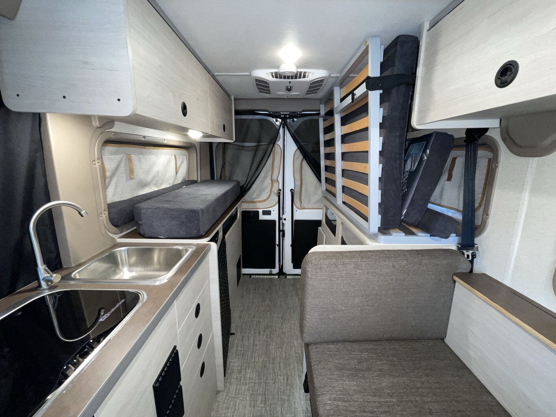 The galley kitchen handles real meals with a cooktop and fridge that are practical for camping life. Tank sizes and the solar-ready setup give you freedom to stay out longer without stressing hookups, and the insulation is actually effective for year-round comfort.