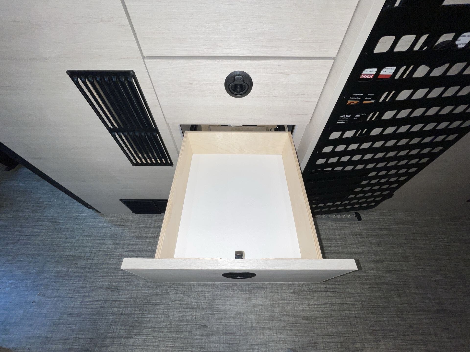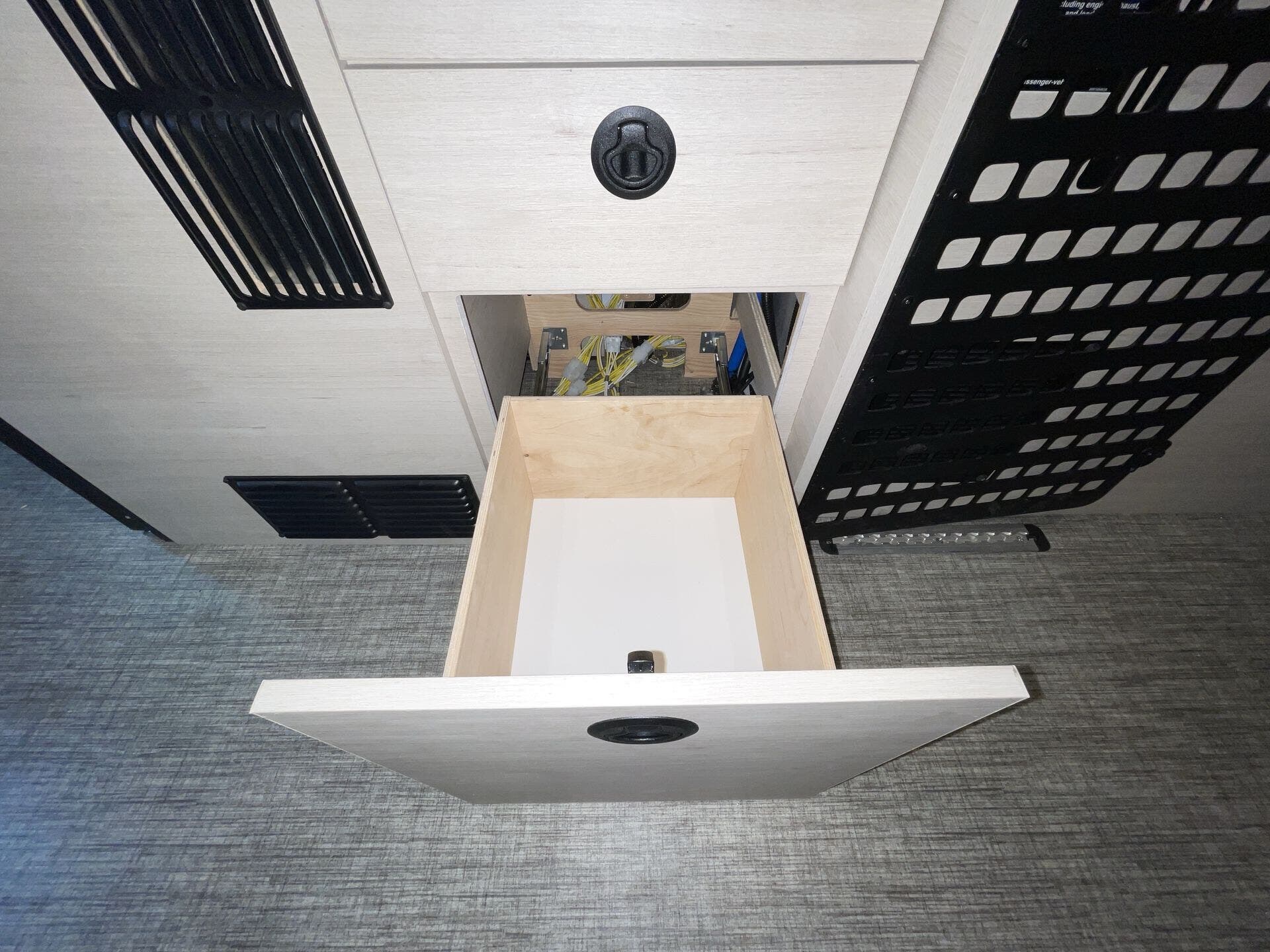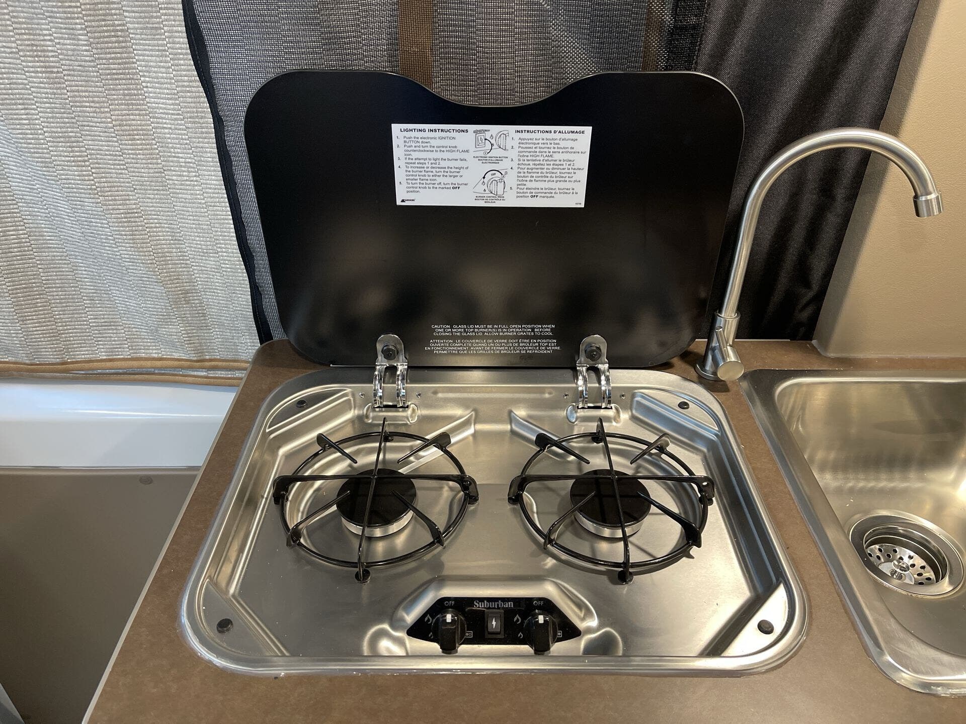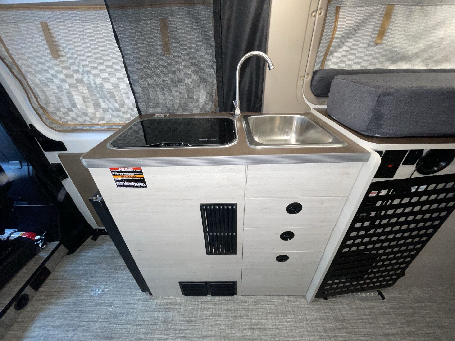 The galley kitchen handles real meals with a cooktop and fridge that are practical for camping life. Tank sizes and the solar-ready setup give you freedom to stay out longer without stressing hookups, and the insulation is actually effective for year-round comfort.