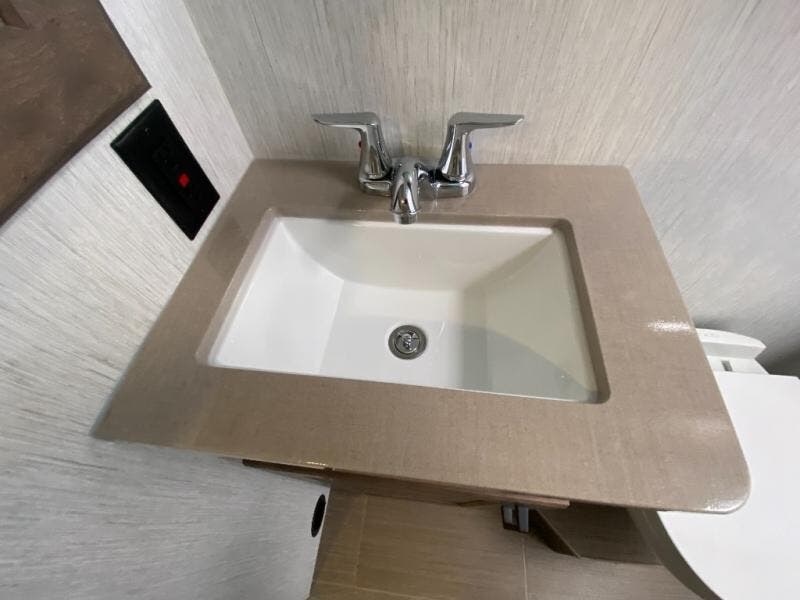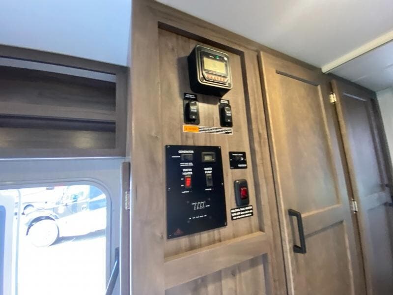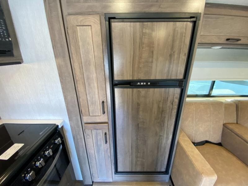 Time spent in this spacious coach will be time well spent! Whether you're dining around the U-shaped dinette, relaxing on the sofa bed, or visiting outdoors under the power awning, you're sure to have a great time. The cab-over bunk and the living room furniture will provide sleeping space for guests, and if don't have a lot of overnight guests, just choose the optional theater seating in place of the sofa bed. A three burner range and a microwave oven will let you prepare your best meals while you're on the road, plus there is an 8 cu. ft. 2-way large double door refrigerator/freezer and pantry for food storage. After a long day outdoors exploring trails, you can relax in the private bedroom on the RV queen bed slide. There are dual bedside nightstands for your things, a sliding door for more space, plus quick access into the rear corner full bath!