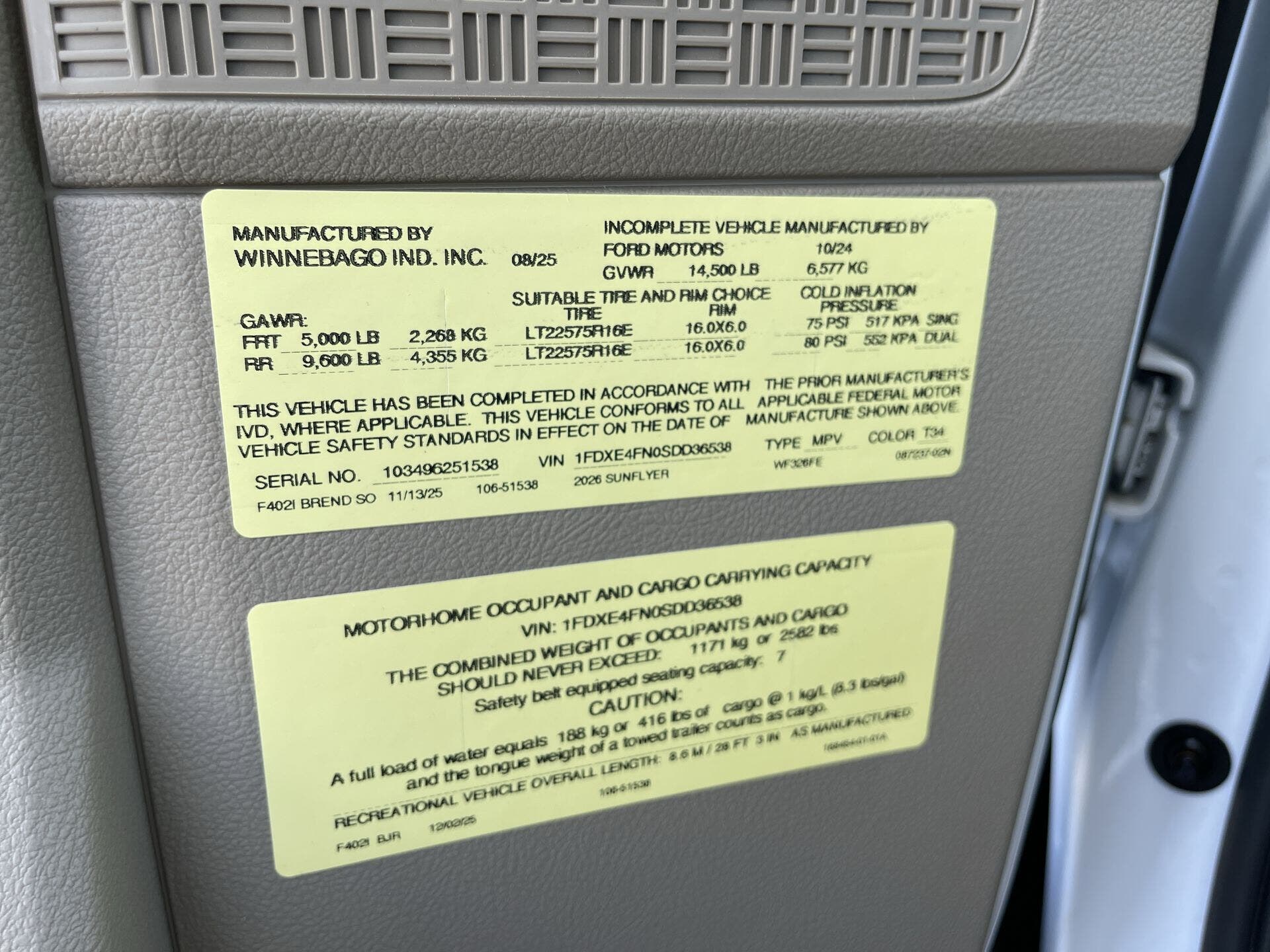 Request More Info on this 2026 Winnebago Sunflyer 26FE Offered for sale by McClain's RV Rockwall
