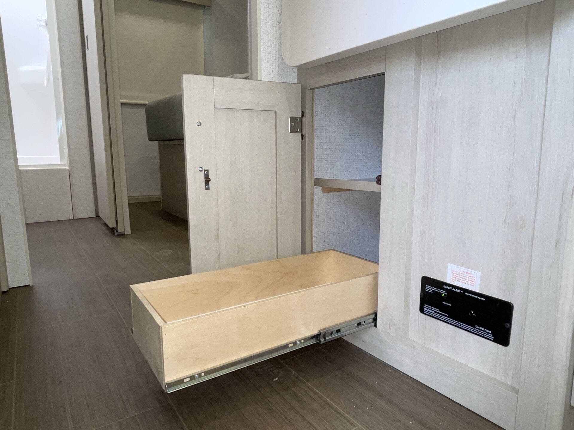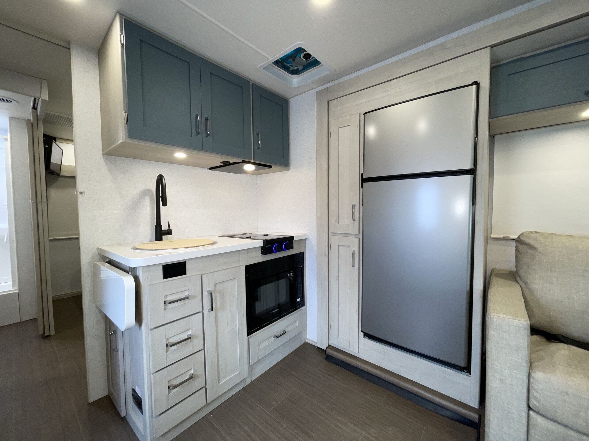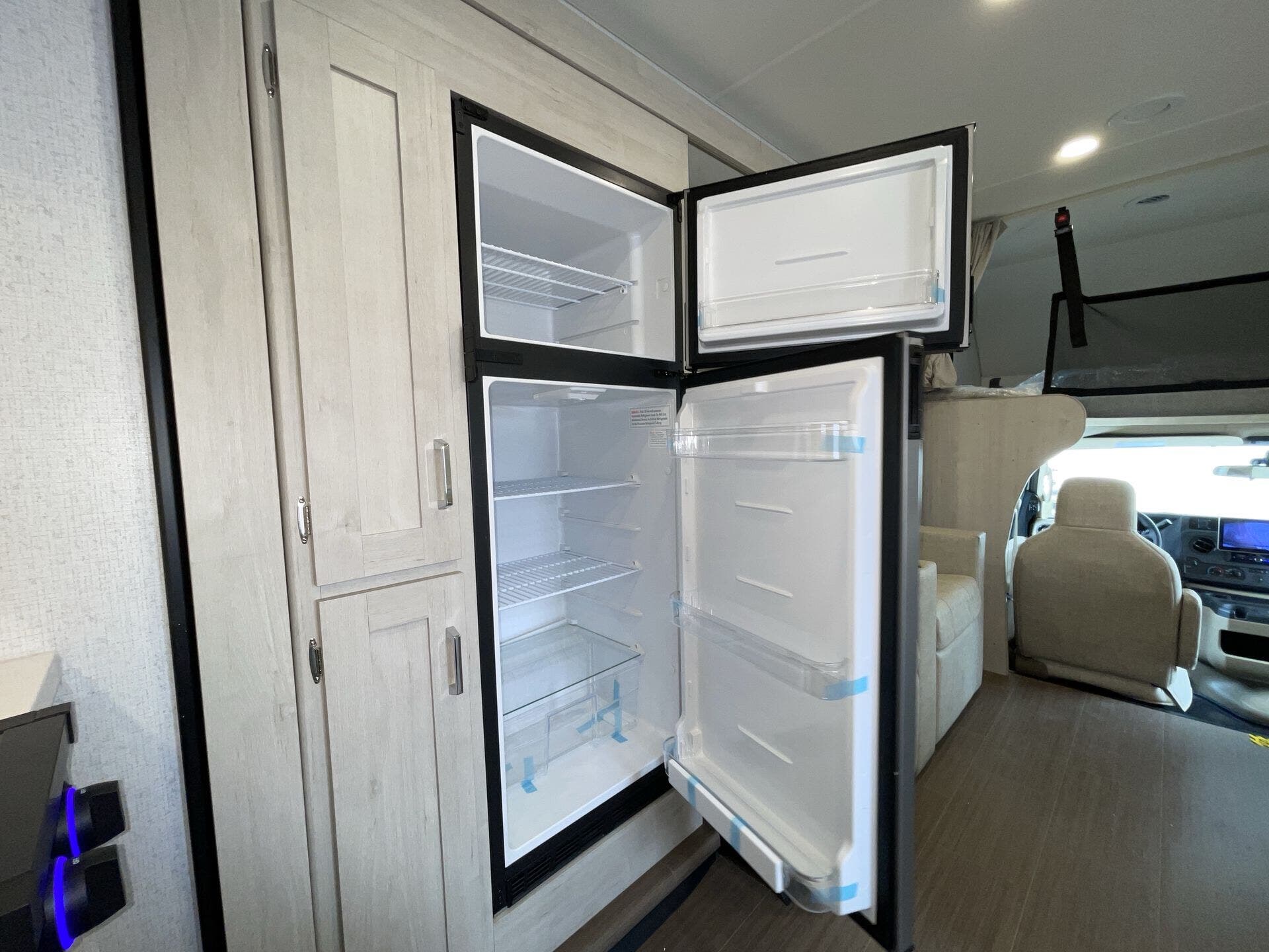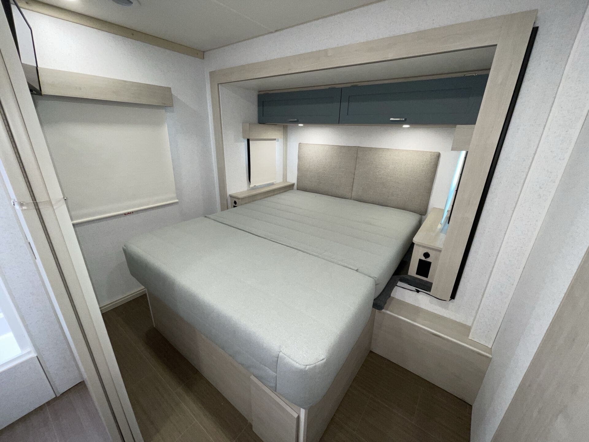 The mid-coach kitchen provides generous counter space and storage, making meal prep easy whether you’re on a quick trip or staying out longer. In the back, the private bedroom features a walk-around queen bed and a spacious bathroom, creating a comfortable place to unwind after a day on the road. With sleeping space for up to six and a length of about 28 feet, the Sunflyer 26FE offers a great balance of drivability, space, and everyday convenience for road trips or extended adventures.