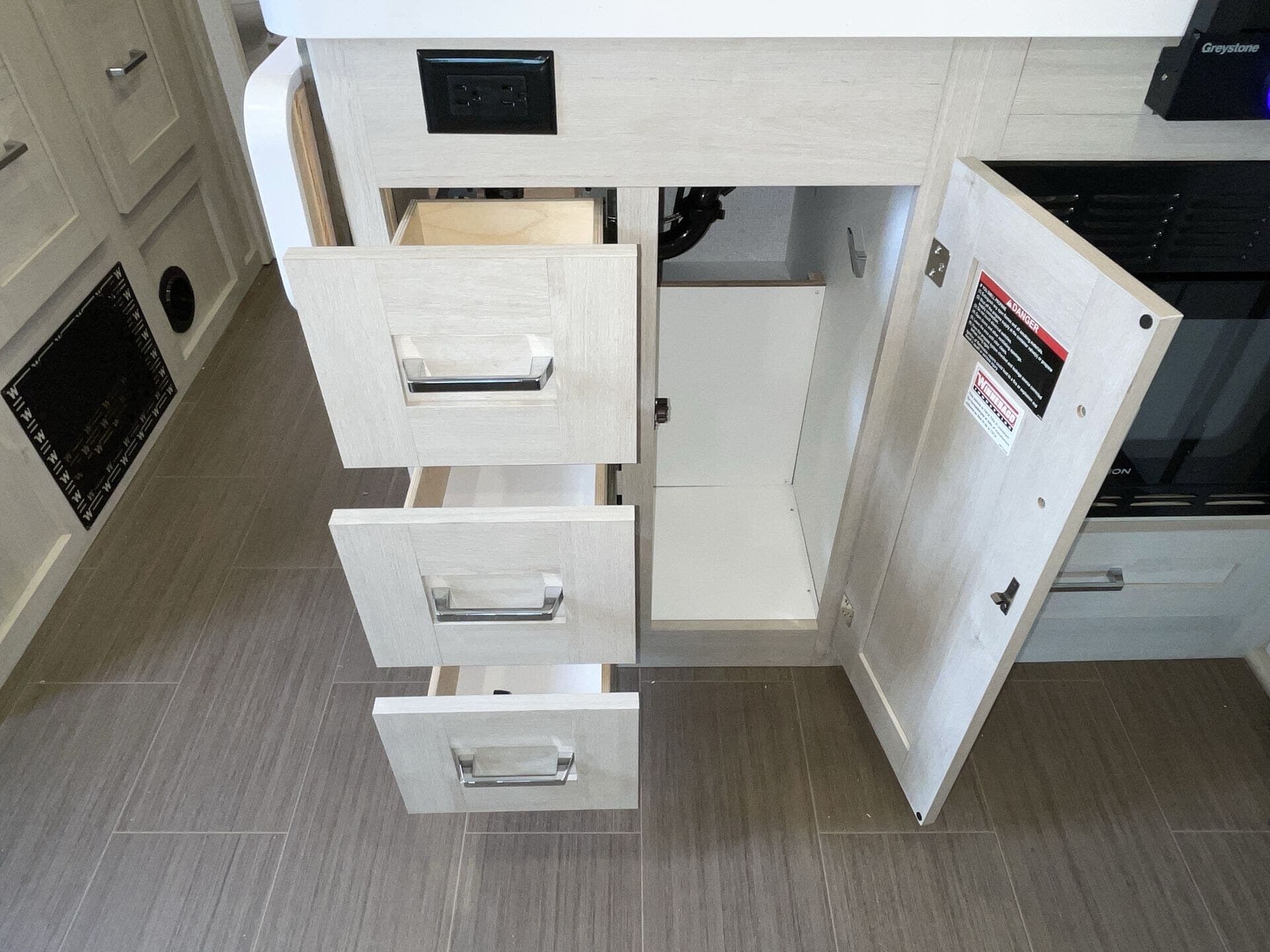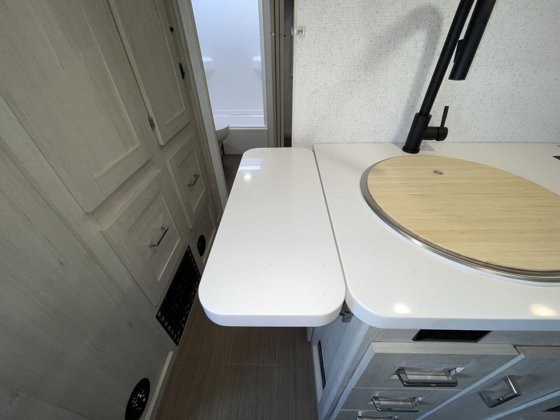 Dinette, Pantry, Queen Bed, Shower, Toilet