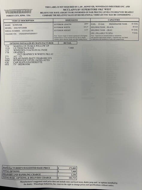 Request More Info on this 2026 Winnebago Sunflyer 28MB Offered for sale by McClain's RV Oklahoma City