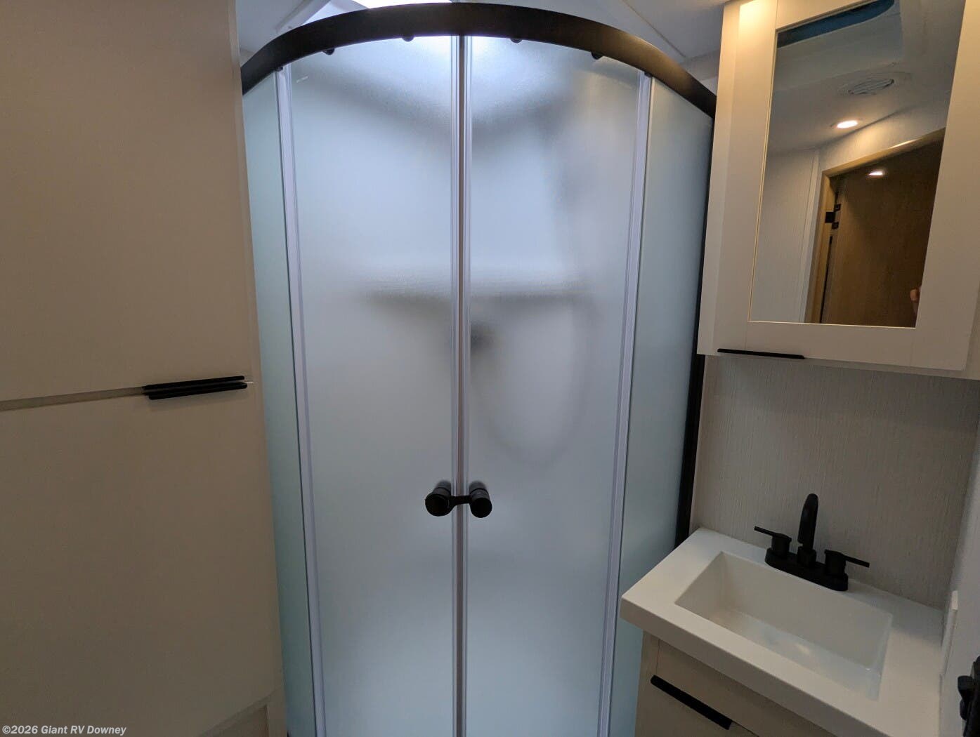 - Full Bath and Outdoor Perks: Features a rear corner full bath, tankless water heater for endless showers, outside shower, power awning with LED lights, and pass-through storage.