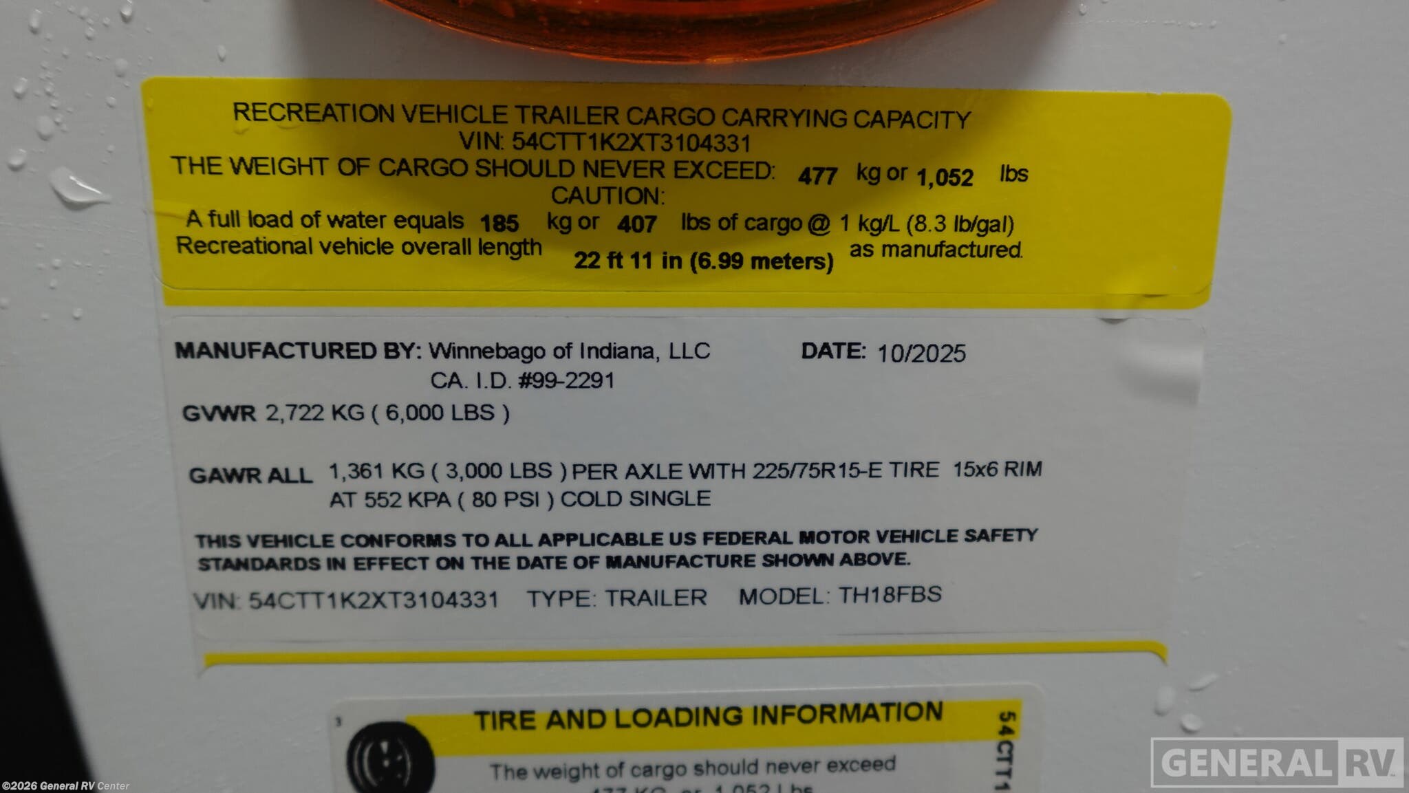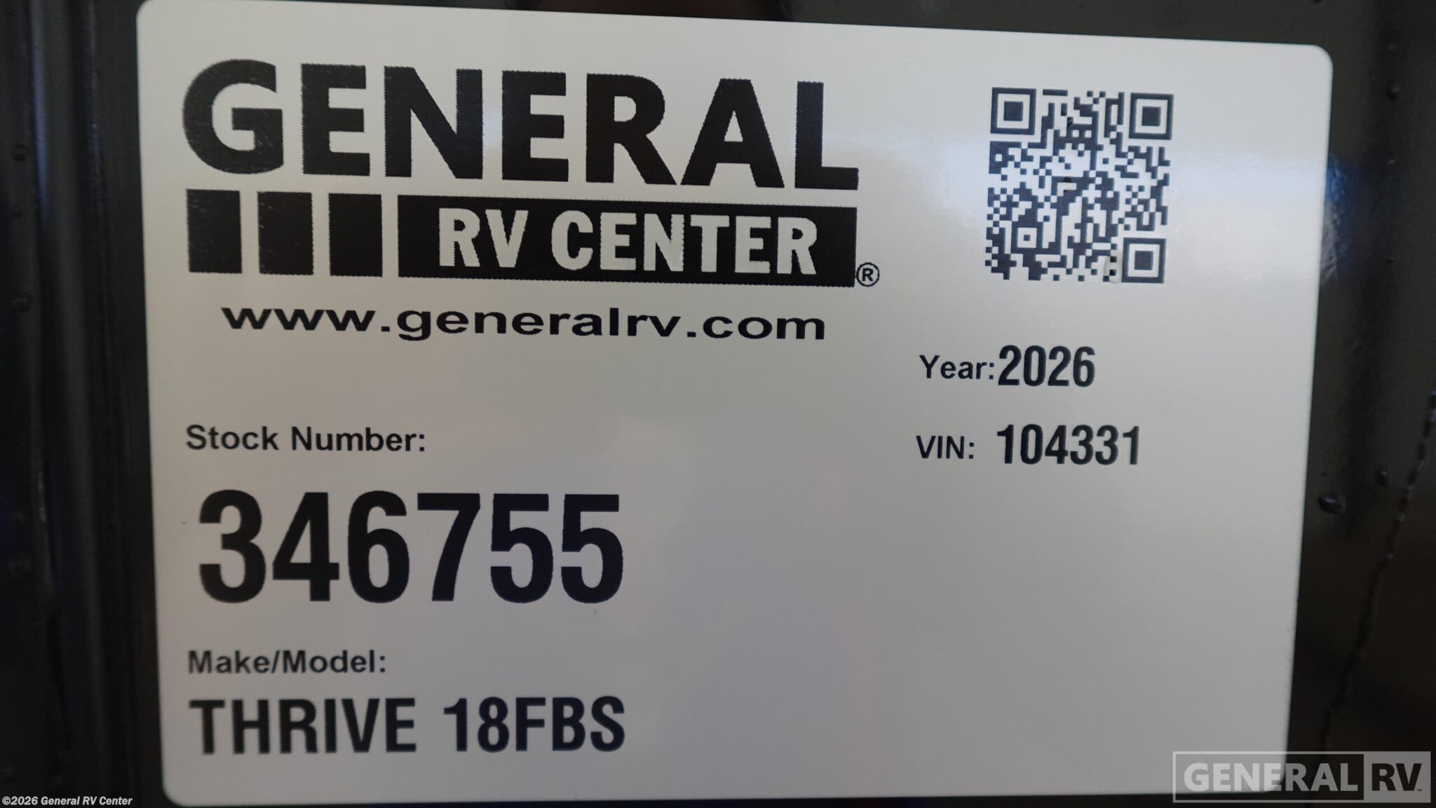 Request More Info on this 2026 Winnebago Thrive 18FBS Offered for sale by General RV Center