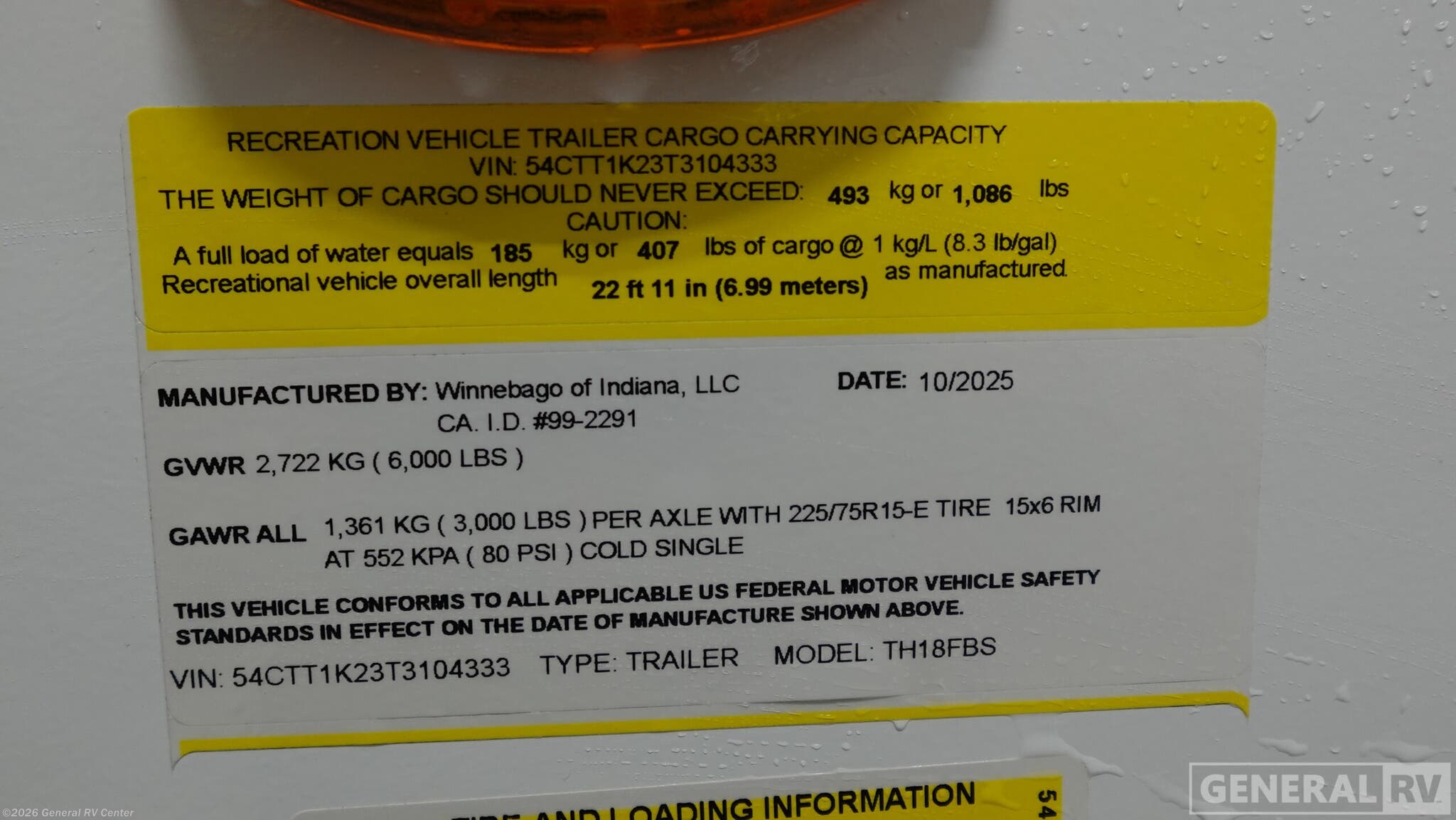 2026 Winnebago Thrive 18FBS Specifications
