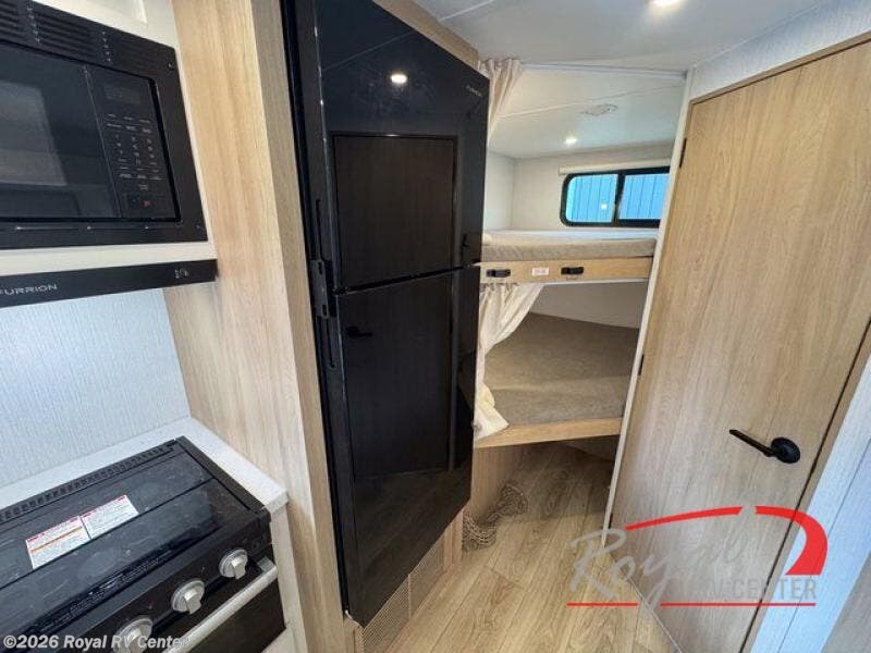 If you enjoy camping with a larger group, this travel trailer with double-size bunks is sure to be a fit! There is also a U-shaped dinette within a slide for more sleeping space, and you'll find the front king-size Murphy bed to be very versatile. A recessed three burner cooktop with an oven will let you make meals each day, and the 10.6 cu. ft. 12V refrigerator will keep your cold items fresh. There is also a countertop extension, giving you more space to prep meals. The full bath includes a power vent fan and a shower skylight that will give you additional lighting and extra head room as you get ready each day!