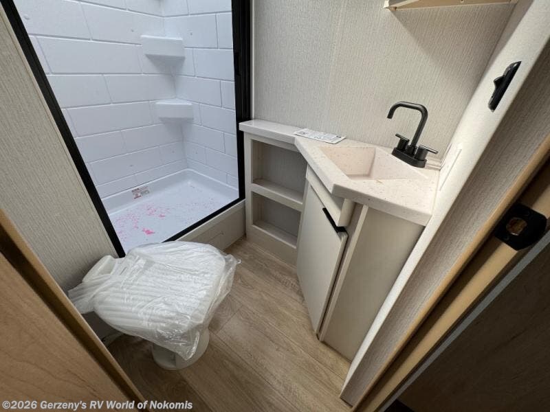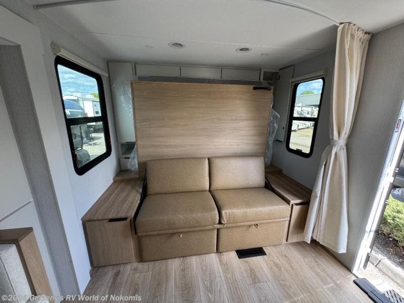 If you enjoy camping with a larger group, this travel trailer with double-size bunks is sure to be a fit! There is also a U-shaped dinette within a slide for more sleeping space, and you'll find the front king-size Murphy bed to be very versatile. A recessed three burner cooktop with an oven will let you make meals each day, and the 10.6 cu. ft. 12V refrigerator will keep your cold items fresh. There is also a countertop extension, giving you more space to prep meals. The full bath includes a power vent fan and a shower skylight that will give you additional lighting and extra head room as you get ready each day!