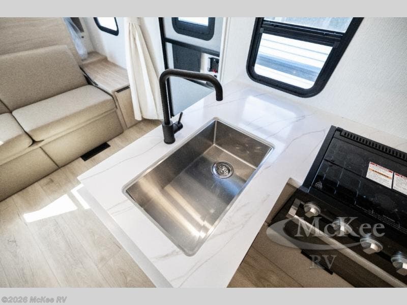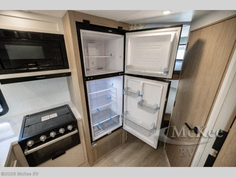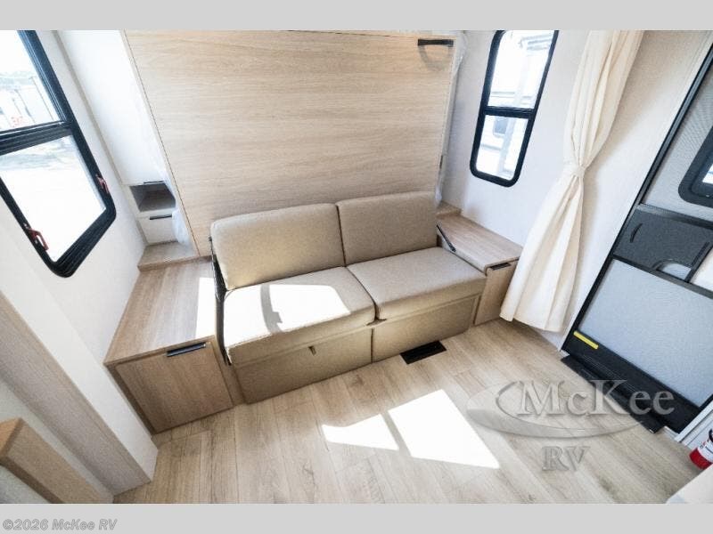 If you enjoy camping with a larger group, this travel trailer with double-size bunks is sure to be a fit! There is also a U-shaped dinette within a slide for more sleeping space, and you'll find the front king-size Murphy bed to be very versatile. A recessed three burner cooktop with an oven will let you make meals each day, and the 10.6 cu. ft. 12V refrigerator will keep your cold items fresh. There is also a countertop extension, giving you more space to prep meals. The full bath includes a power vent fan and a shower skylight that will give you additional lighting and extra head room as you get ready each day!