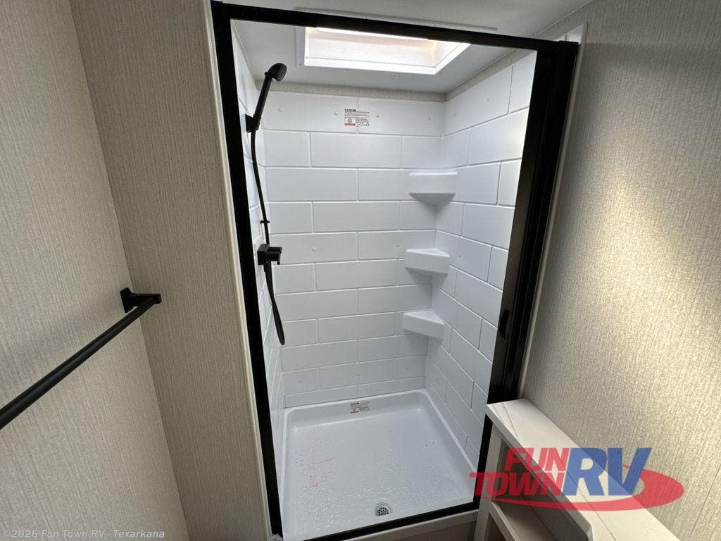 If you enjoy camping with a larger group, this travel trailer with double-size bunks is sure to be a fit! There is also a U-shaped dinette within a slide for more sleeping space, and you'll find the front Olympic Queen Murphy bed to be very versatile. A recessed three burner cooktop with an oven will let you make meals each day, and the 10.6 cu. ft. 12V refrigerator will keep your cold items fresh. There is also a countertop extension, giving you more space to prep meals. The full bath includes a power vent fan and a shower skylight that will give you additional lighting and extra head room as you get ready each day!