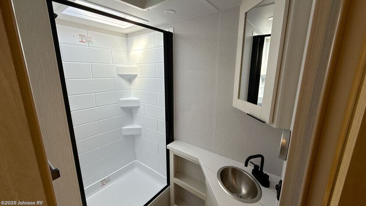 Features Include: Carpetless Slideouts, Roller Shades, Overhead Cabinets, Drawers, Utensil Drawer, Gas Oven, Microwave Oven, Privacy Curtain, Overbed Storage, Wardrobes, Sink, Skylight 14x22, Shower Sliding Door, Toilet, 40# LP, 200w Solar Panel, 30-Amp Service Cord, 18k Furnace, 15k Ducted Roof AC, Power Tongue Jack, NGX Engineered Frame, Dexter EZ Lube Axles, Aluminum Wheels, Fiberglass Sidewalls, Roof Access Ladder