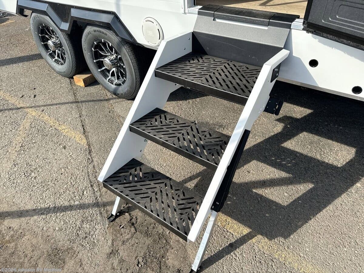 Features Include: Carpetless Slideouts, Roller Shades, Overhead Cabinets, Drawers, Utensil Drawer, Gas Oven, Microwave Oven, Privacy Curtain, Overbed Storage, Wardrobes, Sink, Skylight 14x22, Shower Sliding Door, Toilet, 40# LP, 200w Solar Panel, 30-Amp Service Cord, 18k Furnace, 15k Ducted Roof AC, Power Tongue Jack, NGX Engineered Frame, Dexter EZ Lube Axles, Aluminum Wheels, Fiberglass Sidewalls, Roof Access Ladder