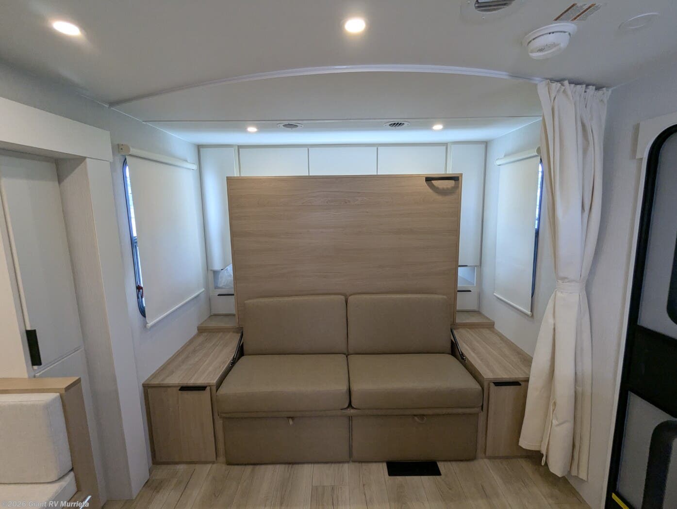 - Murphy-Bed Layout that transitions from social lounge to comfortable sleeping space in seconds.