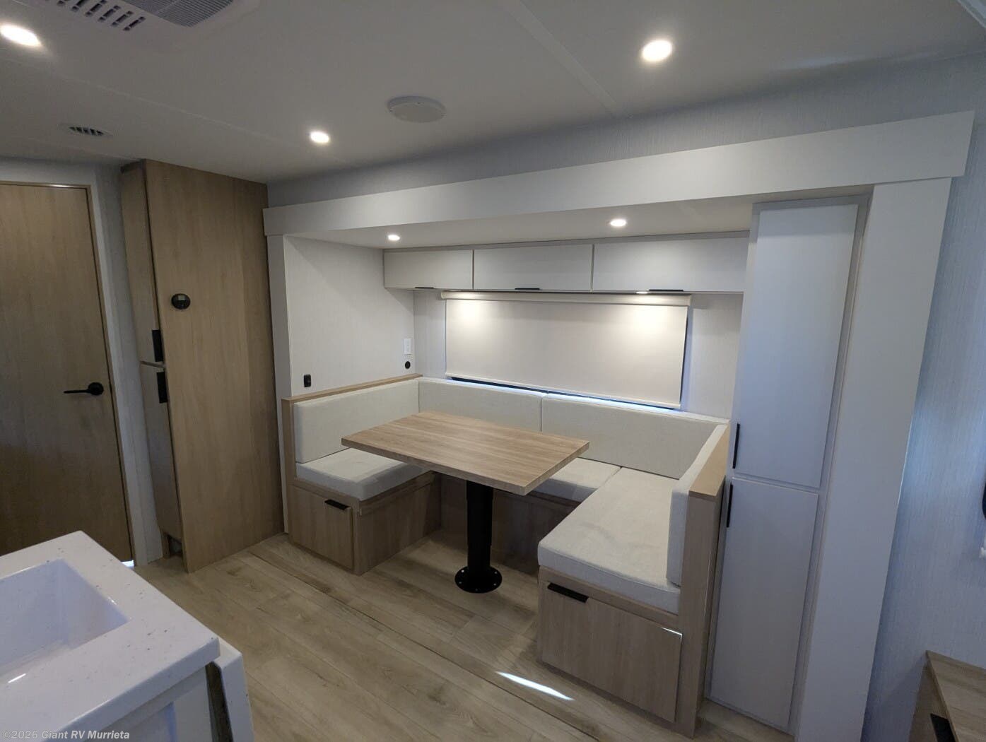 - Open Living & Kitchen Area with U-shaped dinette and smart flow between cooking, dining, and relaxing.