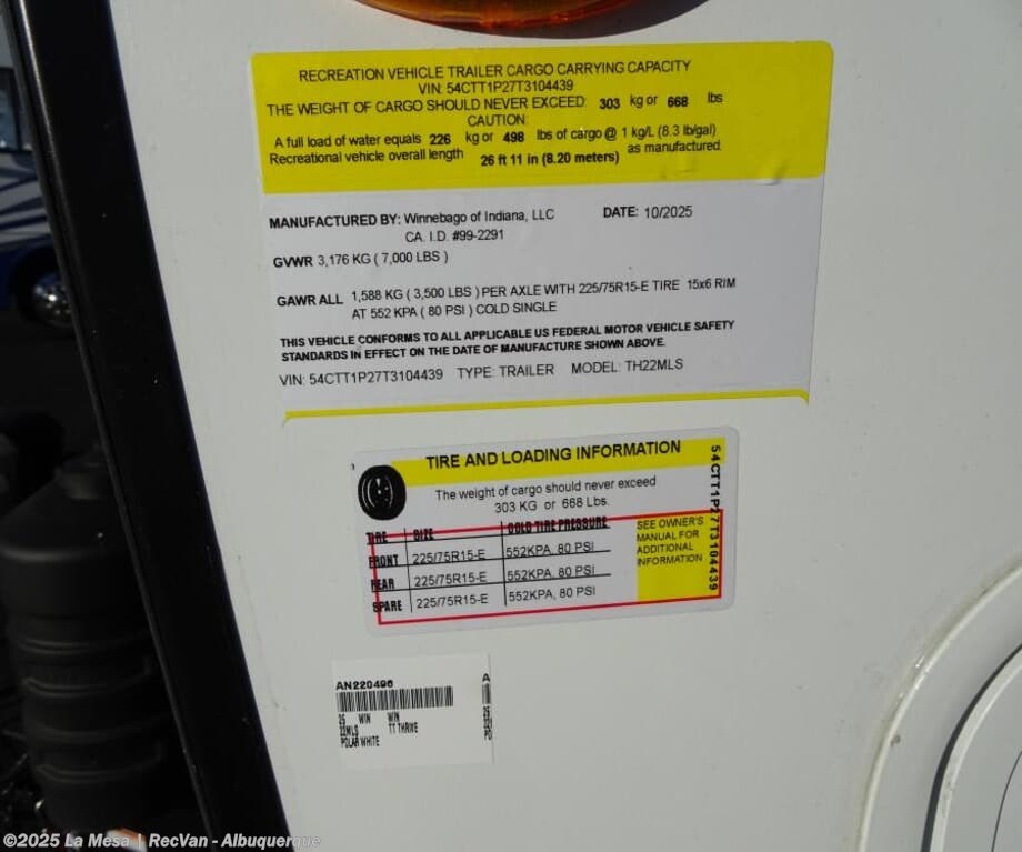 2026 Winnebago Towables THRIVE 22MLS - Please email or call for the full list of the features, availability or anything else we can send to help you. We have some fantastic financing plans and take trades also! It is our #1 goal that your experience with our company is an enjoyable one. Our staff of industry professionals is ready to assist in your recreational vehicle sales and service needs.