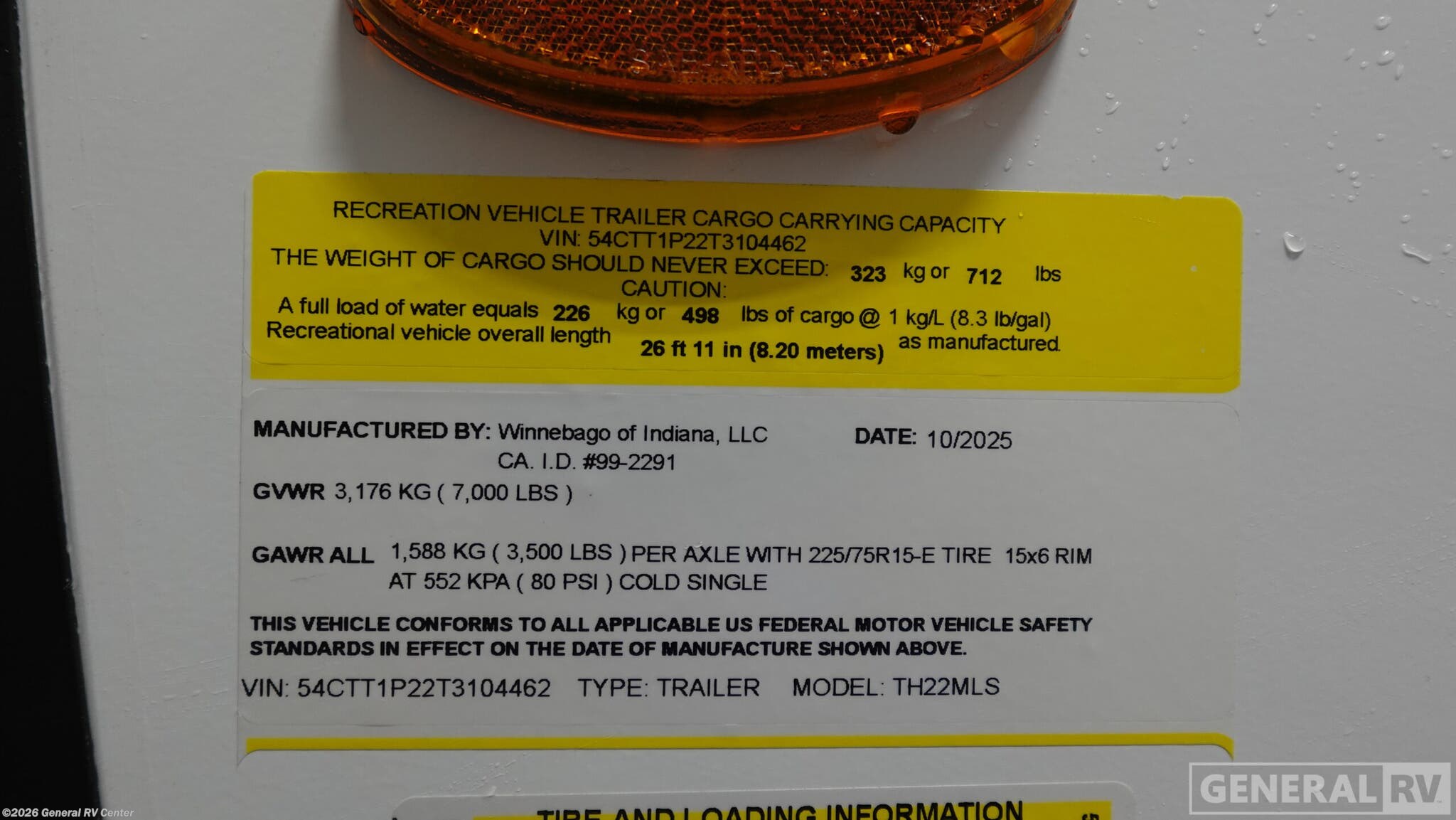 Request More Info on this 2026 Winnebago Thrive 22MLS Offered for sale by General RV Center