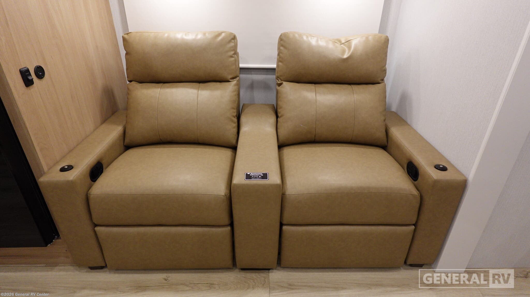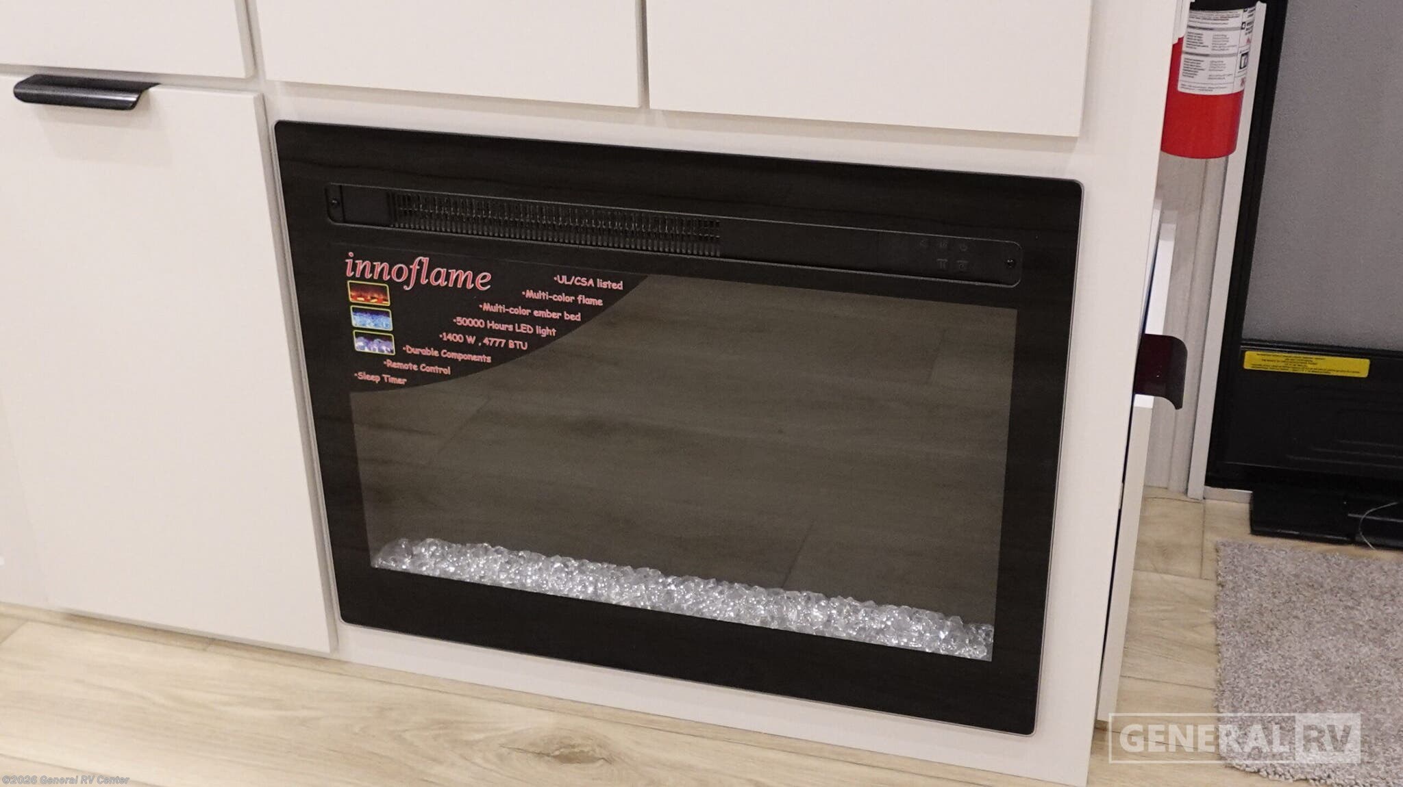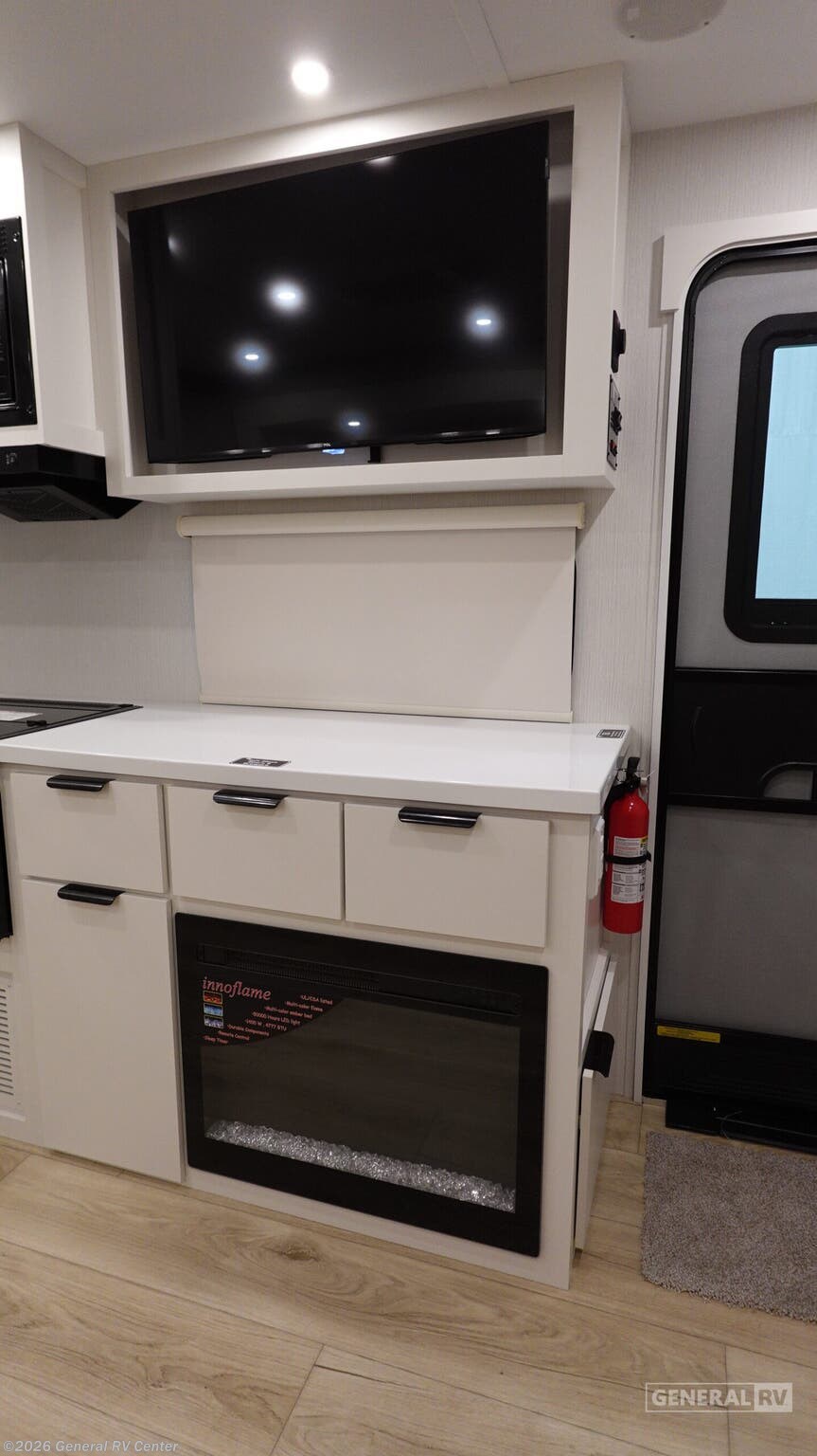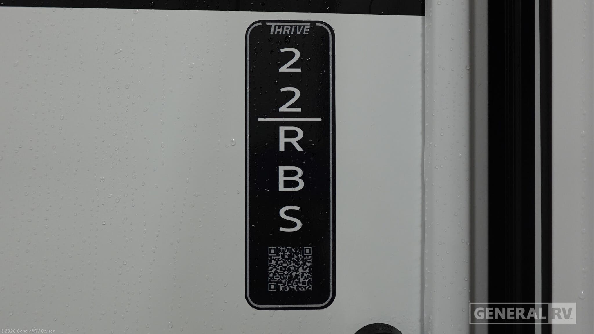 **2026 Winnebago Thrive Travel Trailer 22RBS highlights:** - Rear Bathroom - Theater Seating - Fireplace - Olympic Queen Bed - Large Front Viewing Window The 2026 Winnebago Thrive 22RBS is a thoughtfully designed rear-bath travel trailer built for couples who want comfort, storage, and a modern residential feel in a manageable size. The rear bathroom layout provides excellent space and privacy, while the central living area features theater seating in a slide out, a fireplace, and an entertainment center that creates a cozy place to relax after a day of travel. Large windows throughout, including the oversized front viewing window, bring in natural light and enhance the open feel of the interior. Up front, the private bedroom features an Olympic queen bed with nightstands, wardrobe storage, and pocket door access for easy separation from the living space. The central kitchen is well equipped with a three-burner cooktop, microwave, pantry, pull-out trash and recycling, and a 12-volt refrigerator, making it ideal for extended stays. With Winnebago’s quality construction, tankless water heater, solar capability, and smart use of space, the Thrive 22RBS is an excellent choice for campers looking for a comfortable, modern travel trailer designed around everyday livability.