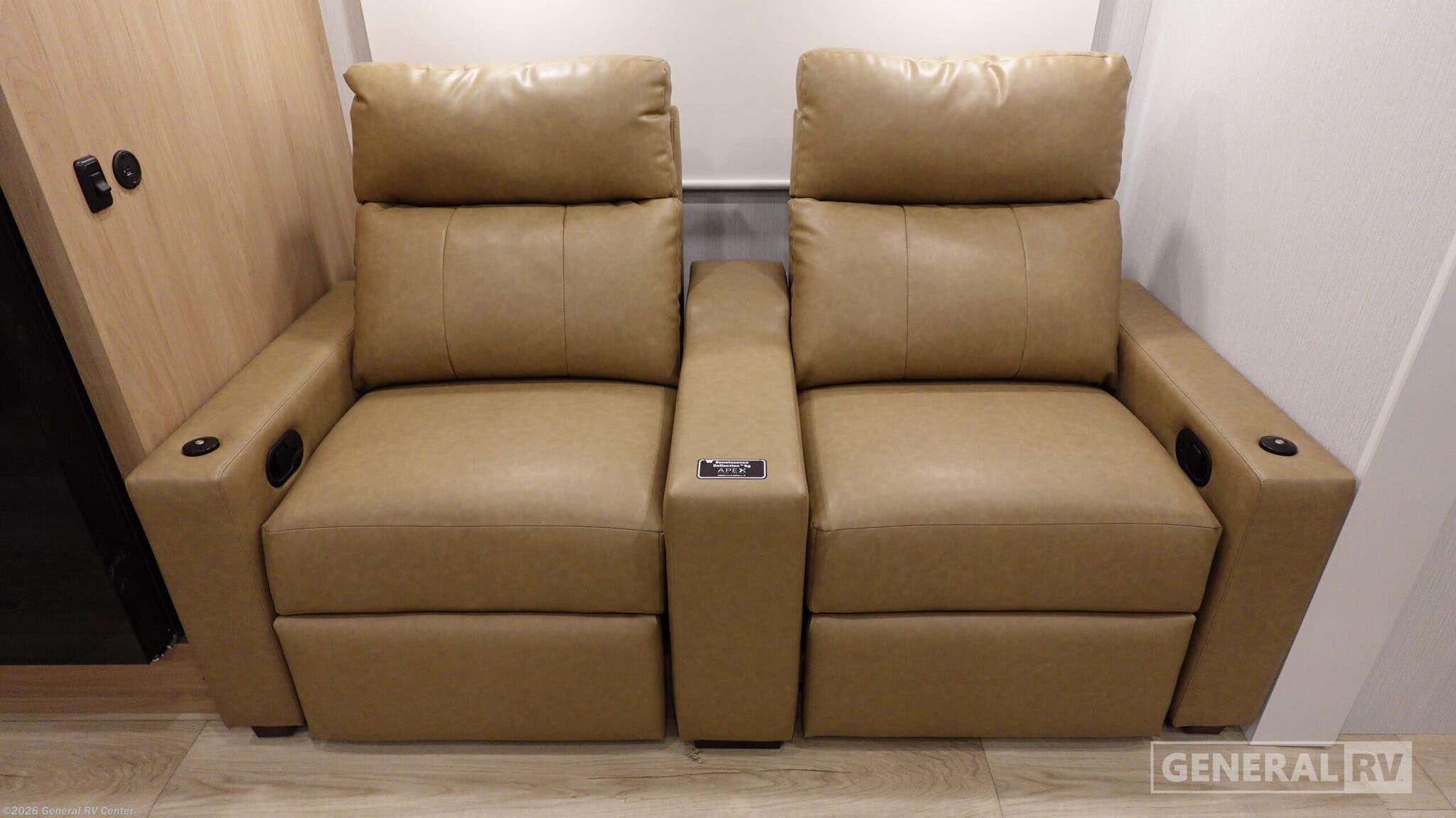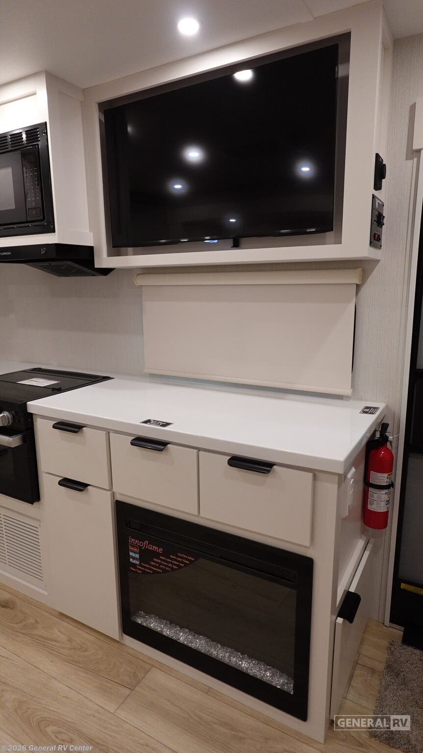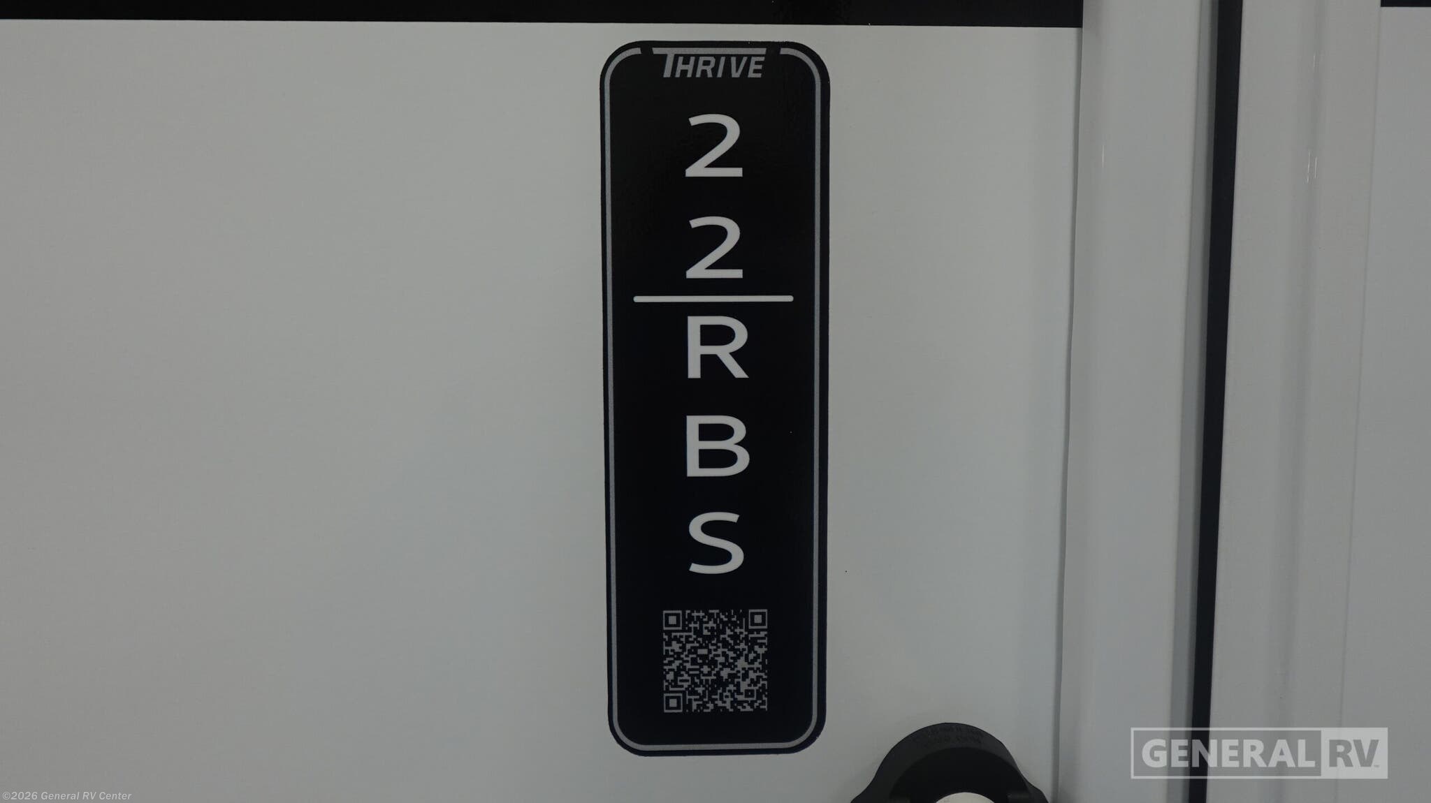 **2026 Winnebago Thrive Travel Trailer 22RBS highlights:** - Rear Bathroom - Theater Seating - Fireplace - Olympic Queen Bed - Large Front Viewing Window The 2026 Winnebago Thrive 22RBS is a thoughtfully designed rear-bath travel trailer built for couples who want comfort, storage, and a modern residential feel in a manageable size. The rear bathroom layout provides excellent space and privacy, while the central living area features theater seating in a slide out, a fireplace, and an entertainment center that creates a cozy place to relax after a day of travel. Large windows throughout, including the oversized front viewing window, bring in natural light and enhance the open feel of the interior. Up front, the private bedroom features an Olympic queen bed with nightstands, wardrobe storage, and pocket door access for easy separation from the living space. The central kitchen is well equipped with a three-burner cooktop, microwave, pantry, pull-out trash and recycling, and a 12-volt refrigerator, making it ideal for extended stays. With Winnebago’s quality construction, tankless water heater, solar capability, and smart use of space, the Thrive 22RBS is an excellent choice for campers looking for a comfortable, modern travel trailer designed around everyday livability.