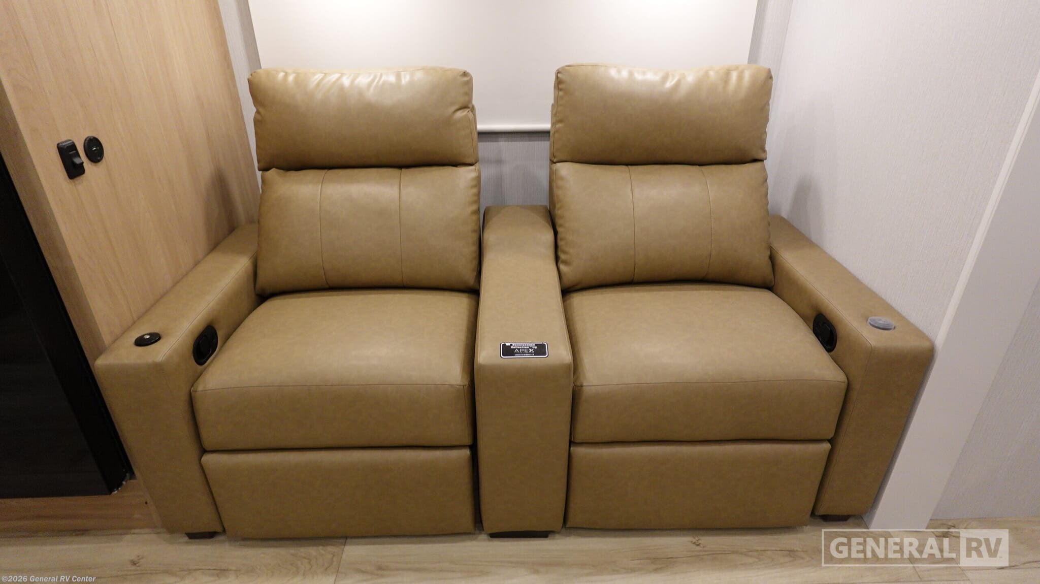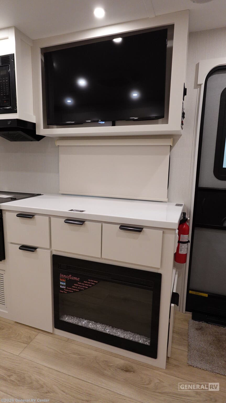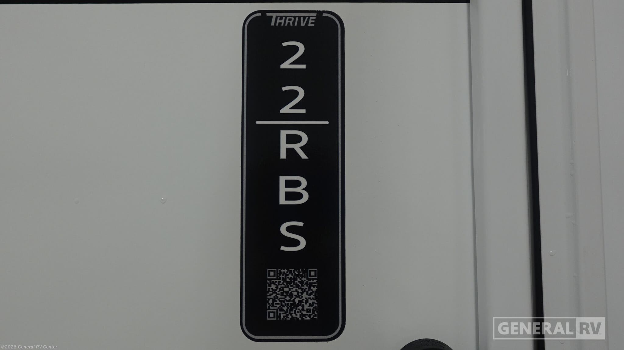 **2026 Winnebago Thrive Travel Trailer 22RBS highlights:** - Rear Bathroom - Theater Seating - Fireplace - Olympic Queen Bed - Large Front Viewing Window The 2026 Winnebago Thrive 22RBS is a thoughtfully designed rear-bath travel trailer built for couples who want comfort, storage, and a modern residential feel in a manageable size. The rear bathroom layout provides excellent space and privacy, while the central living area features theater seating in a slide out, a fireplace, and an entertainment center that creates a cozy place to relax after a day of travel. Large windows throughout, including the oversized front viewing window, bring in natural light and enhance the open feel of the interior. Up front, the private bedroom features an Olympic queen bed with nightstands, wardrobe storage, and pocket door access for easy separation from the living space. The central kitchen is well equipped with a three-burner cooktop, microwave, pantry, pull-out trash and recycling, and a 12-volt refrigerator, making it ideal for extended stays. With Winnebago’s quality construction, tankless water heater, solar capability, and smart use of space, the Thrive 22RBS is an excellent choice for campers looking for a comfortable, modern travel trailer designed around everyday livability.