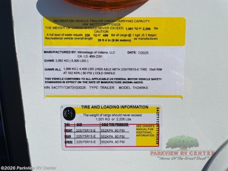 Request More Info on this 2026 Winnebago Thrive 24RKS Offered for sale by Parkview RV Center