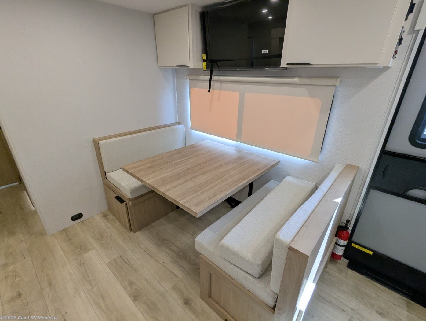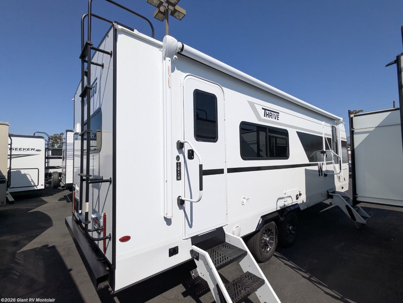 Discover elevated comfort with the 2026 Winnebago Thrive 24RKS, a stylish travel trailer crafted for two or three that doesn’t compromise on upscale features. Featuring a thoughtful rear-kitchen layout loaded with counter space, a large megadinette for dining or work, and a serene front private bedroom, this model balances premium living with intelligent design. Expansive windows and intuitive space flow make relaxing or entertaining seamless.