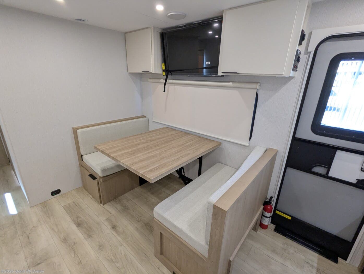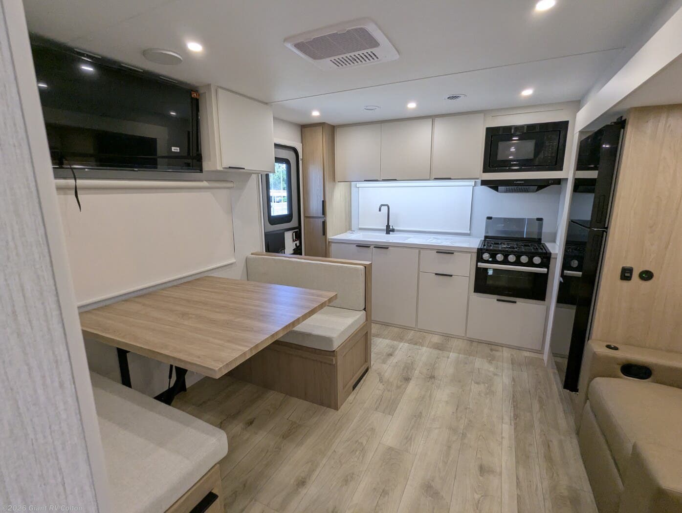 Discover elevated comfort with the 2026 Winnebago Thrive 24RKS, a stylish travel trailer crafted for two or three that doesn’t compromise on upscale features. Featuring a thoughtful rear-kitchen layout loaded with counter space, a large megadinette for dining or work, and a serene front private bedroom, this model balances premium living with intelligent design. Expansive windows and intuitive space flow make relaxing or entertaining seamless.