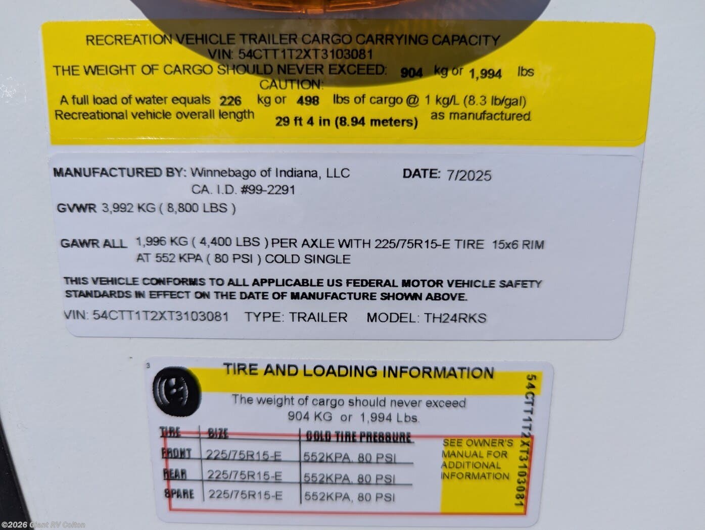 Request More Info on this 2026 Winnebago Thrive 24RKS Offered for sale by Giant RV