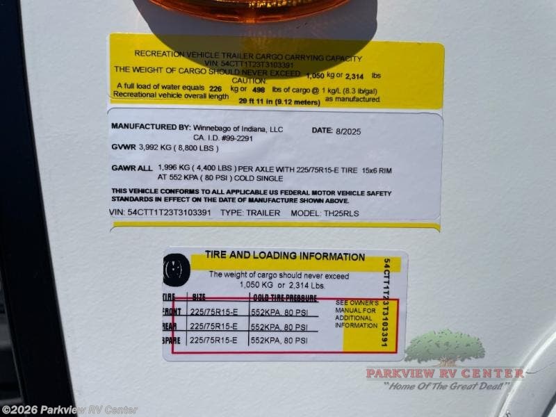 Request More Info on this 2026 Winnebago Thrive 25RLS Offered for sale by Parkview RV Center