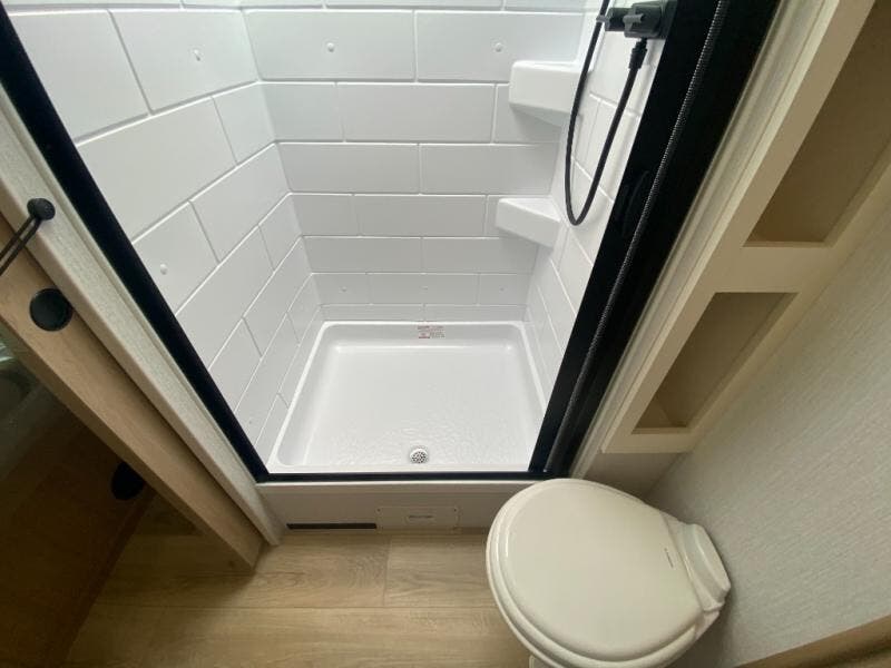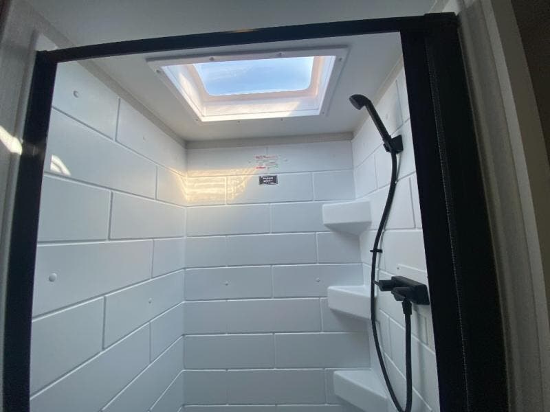 With any Thrive travel trailer by Winnebago, you can camp with functionality, comfort, and convenience! The large front viewing window with strike guard will be the first thing that catches your eye, and the fiberglass sidewalls with Azdel Onboard provide a durable trailer made to last. There is also an exterior ladder, along with front radius profile lights, power stabilizer jacks, and a powered awning with LED lighting to name a few exterior features. You will stay powered up by the 30-amp power cord and 200-watt solar panel, plus there is a tankless water heater for endless hot showers. Inside, you'll love the custom Winnebago furniture, carpetless side outs, molded fiberglass countertops, and residential recessed ceiling lights to keep your space well lit!