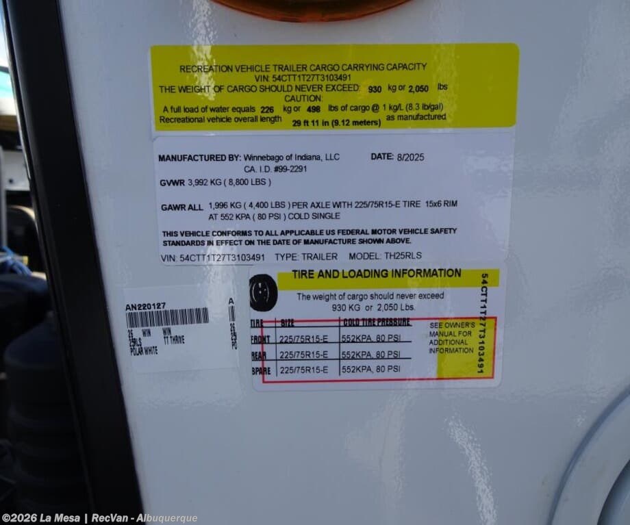 Request More Info on this 2026 Winnebago Thrive 25RLS Offered for sale by La Mesa | RecVan - Albuquerque