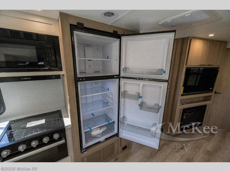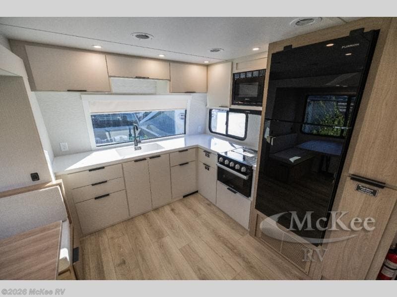 Step into the all-new 2026 Winnebago Thrive 26FKD — a travel trailer that combines premium craftsmanship with full-camp functionality. You’ll love the expansive front panoramic window that bathes the interior in natural light and frames your destination like artwork. The front galley layout brings all the chef-worthy features you want, including fiberglass countertops, integrated sink, and dedicated pull-out trash/recycling and utensil drawers.