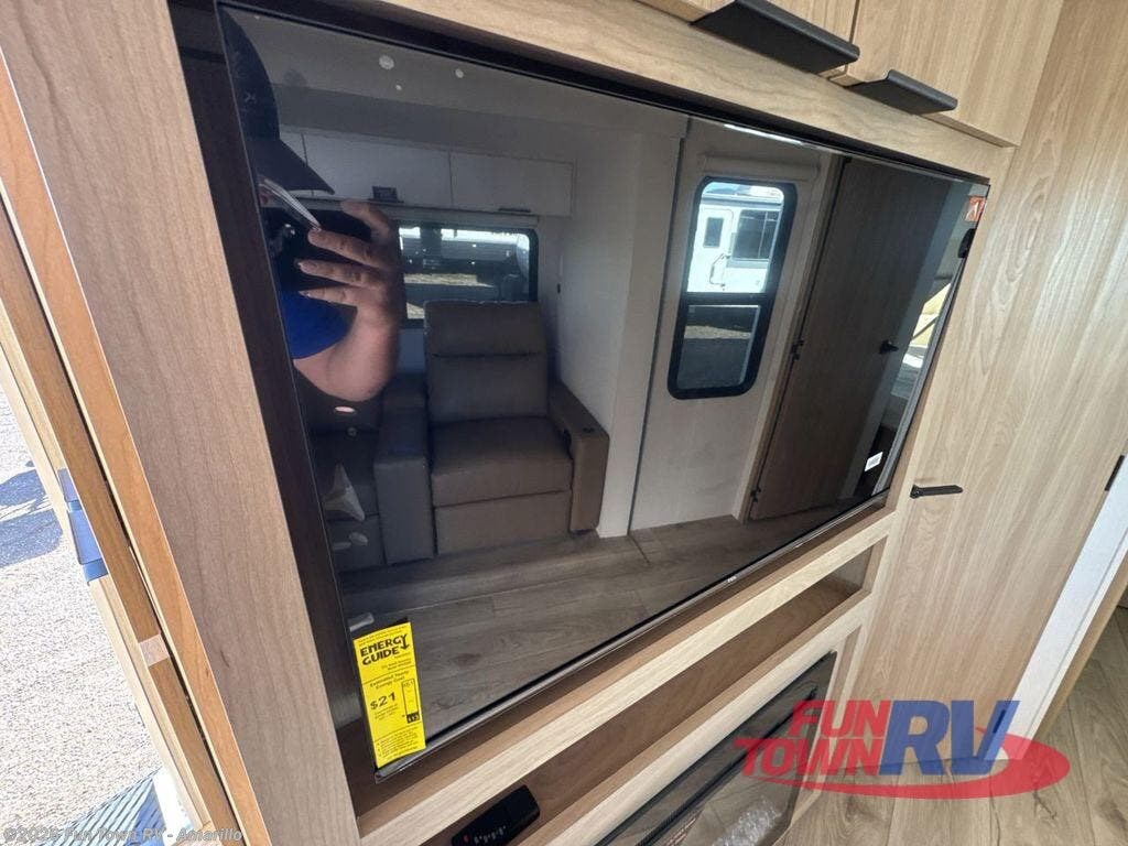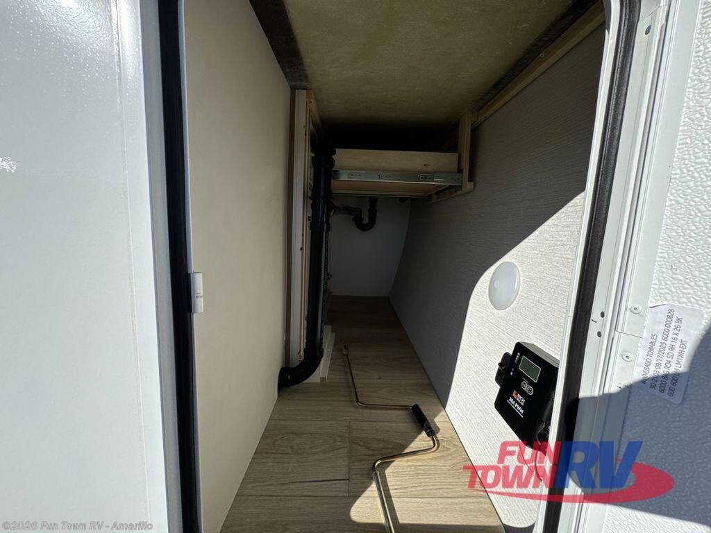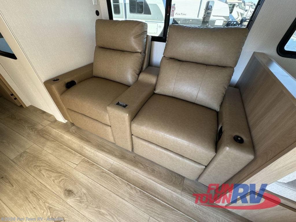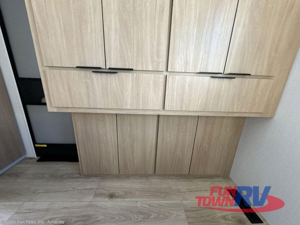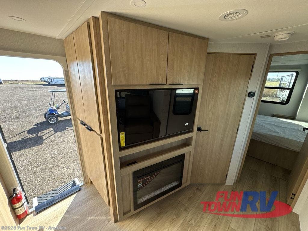 Have everything you need in a compact and well equipped travel trailer. After entering the travel trailer you will find neat places and storage. There is a galley kitchen with molded fiberglass countertops providing unmatched durability. When wanting a perfect place to relax you can enjoy watching TV in the booth dinette or enjoy movies just like at the theaters in the theater seating. If you want to have your own private space you will love the bedroom that has access to a conveniently placed bathroom with a modern radius shower. The bedroom also has a closet to store all your clothes and keep them wrinkle-free!