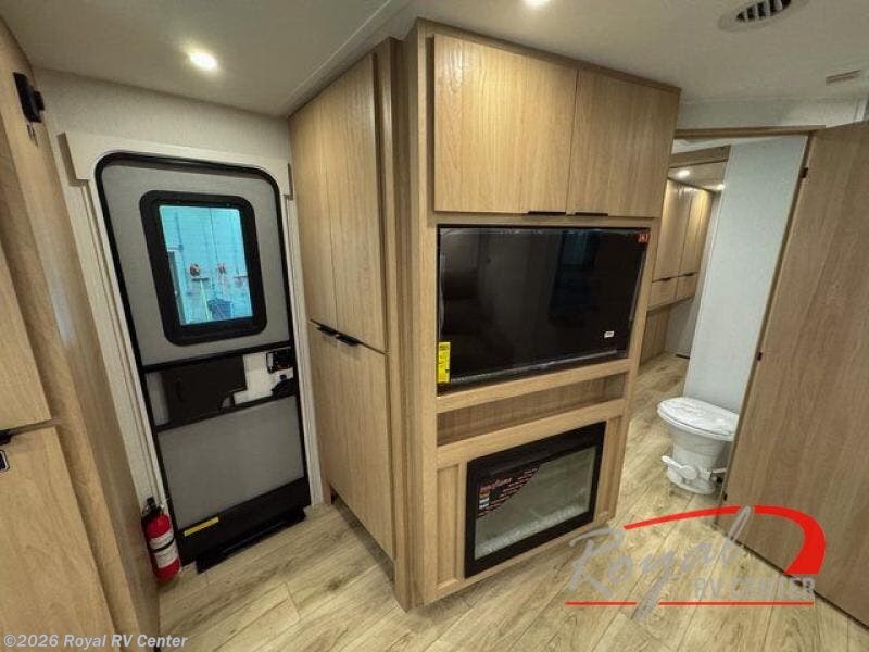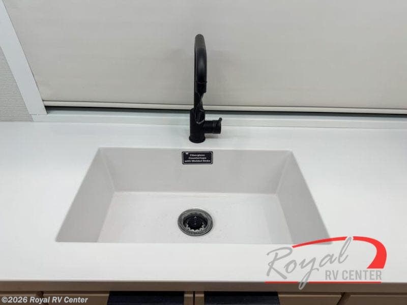 Have everything you need in a compact and well equipped travel trailer. After entering the travel trailer you will find neat places and storage. There is a galley kitchen with molded fiberglass countertops providing unmatched durability. When wanting a perfect place to relax you can enjoy watching TV in the booth dinette or enjoy movies just like at the theaters in the theater seating. If you want to have your own private space you will love the bedroom that has access to a conveniently placed bathroom with a modern radius shower. The bedroom also has a closet to store all your clothes and keep them wrinkle-free!