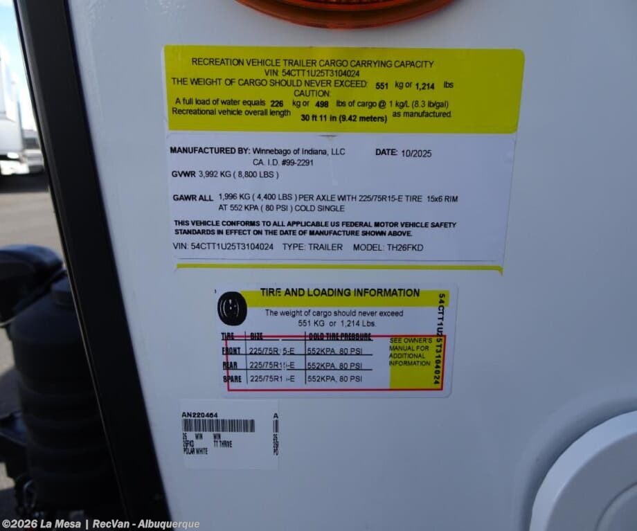 Request More Info on this 2026 Winnebago Thrive 26FKD Offered for sale by La Mesa | RecVan - Albuquerque