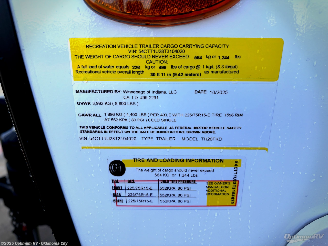 Request More Info on this 2026 Winnebago Thrive 26FKD Offered for sale by Optimum RV - Oklahoma City