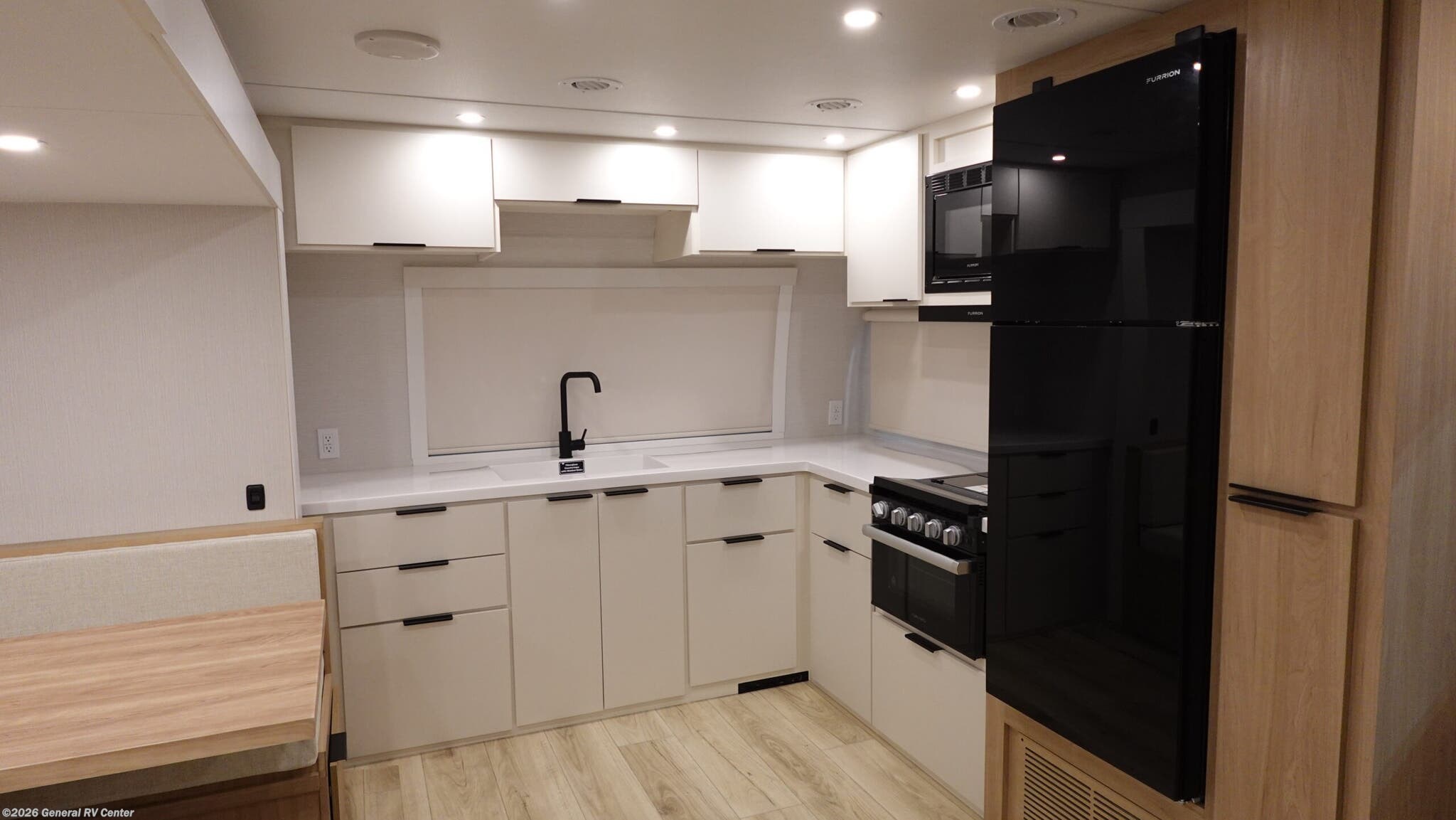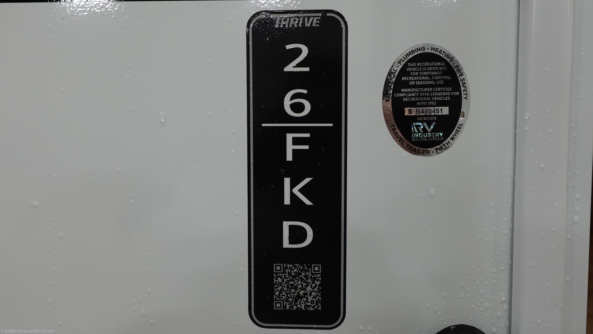 **Winnebago Thrive travel trailer 26FKD highlights:** * Rear Private Bedroom * Theater Seating * Radius Shower * Booth Dinette Have everything you need in a compact and well equipped travel trailer. After entering the travel trailer you will find neat places and storage to have everything in place. There is a galley kitchen with molded fiberglass countertops providing unmatched durability. When wanting a perfect place to relax you can enjoy watching TV in the booth dinette or enjoy movies just like at the theaters in the theater seating. If you want to have your own private space you will love the bedroom that has access to a conveniently placed bathroom with a modern radius shower. The bedroom also has a closet to store all your clothes and keep them wrinkle-free! With any Thrive travel trailer by Winnebago, you can camp with functionality, comfort, and convenience! The large front viewing window with strike guard will be the first thing that catches your eye, and the fiberglass sidewalls with Azdel Onboard provide a durable trailer made to last. There is also an exterior ladder, along with front radius profile lights, power stabilizer jacks, and a powered awning with LED lighting to name a few exterior features. You will stay powered up by the 30-amp power cord and 200-watt solar panel, plus there is a tankless water heater for endless hot showers. Inside, you'll love the custom Winnebago furniture, carpetless side outs, molded fiberglass countertops, and residential recessed ceiling lights to keep your space well lit!