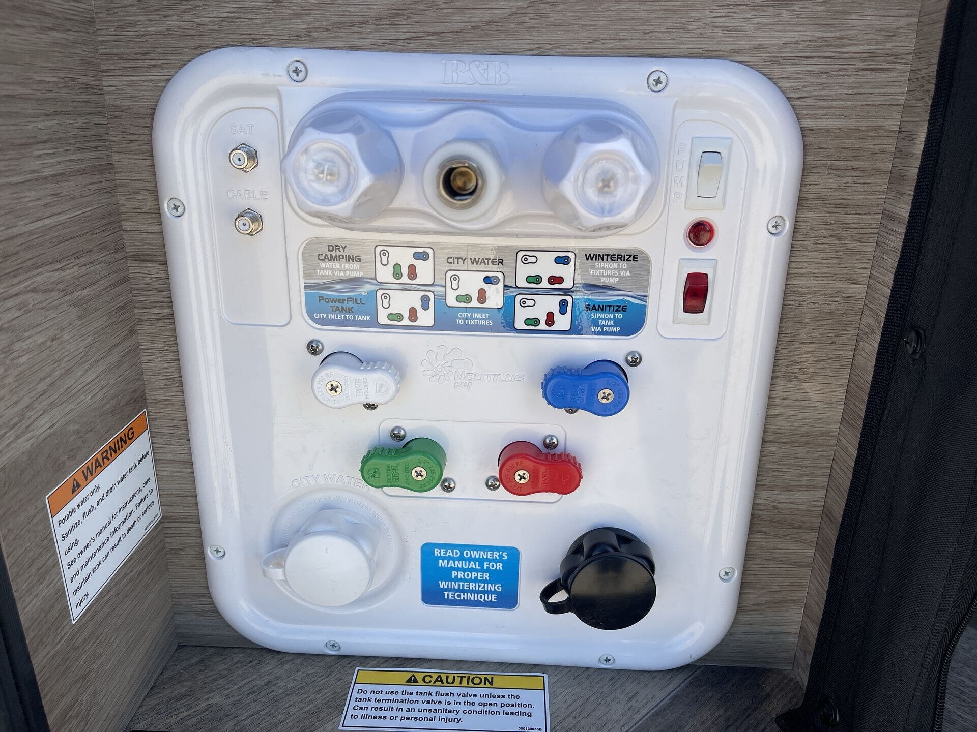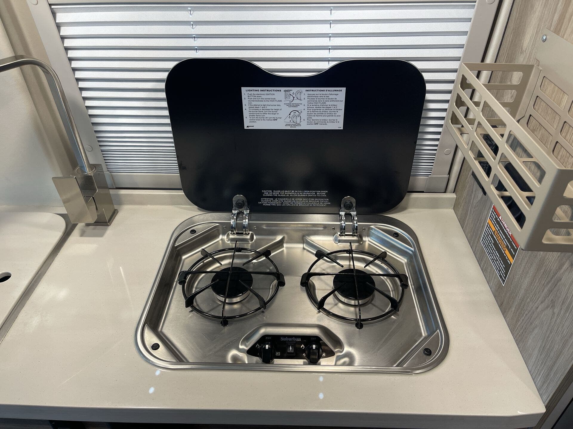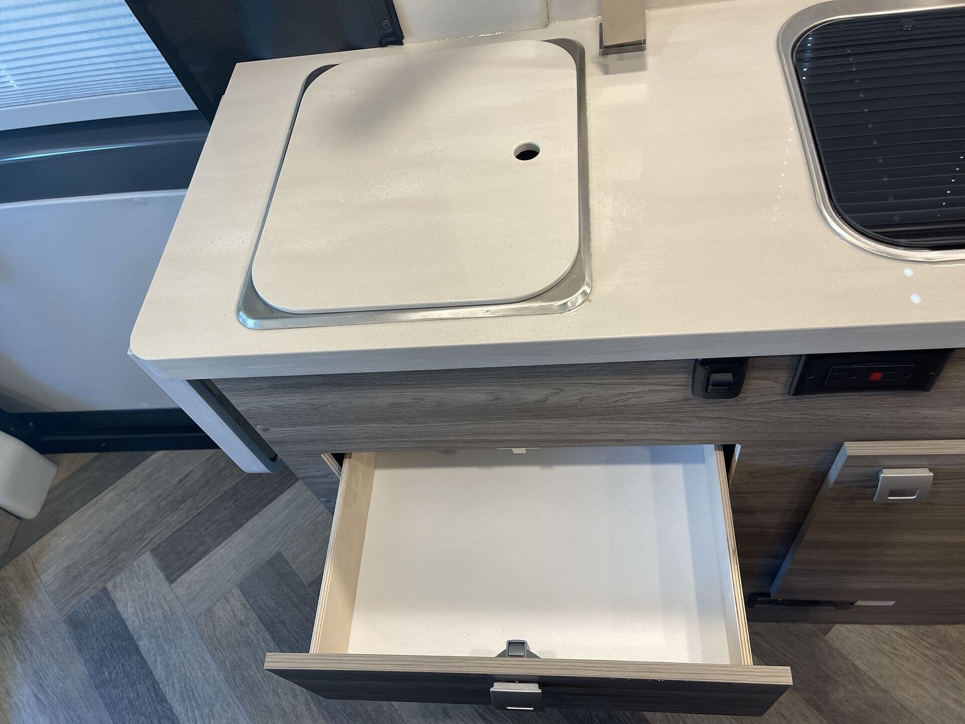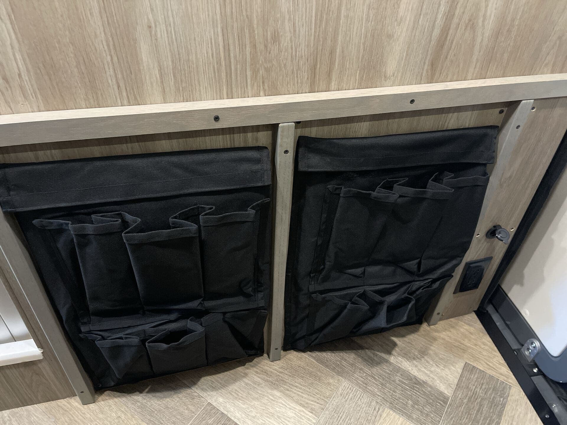 Inside, the Travato is equipped with a variety of features to make every journey comfortable and convenient. The RV includes essentials such as a microwave, refrigerator, stove top burner, water heater, air conditioning, water tanks with a combined capacity of over 43 gallons, and dependable safety features. The interior offers cozy sleeping for two and comes with thoughtful touches like day/night shades, overhead cabinetry, a medicine cabinet, and a pantry for added convenience.