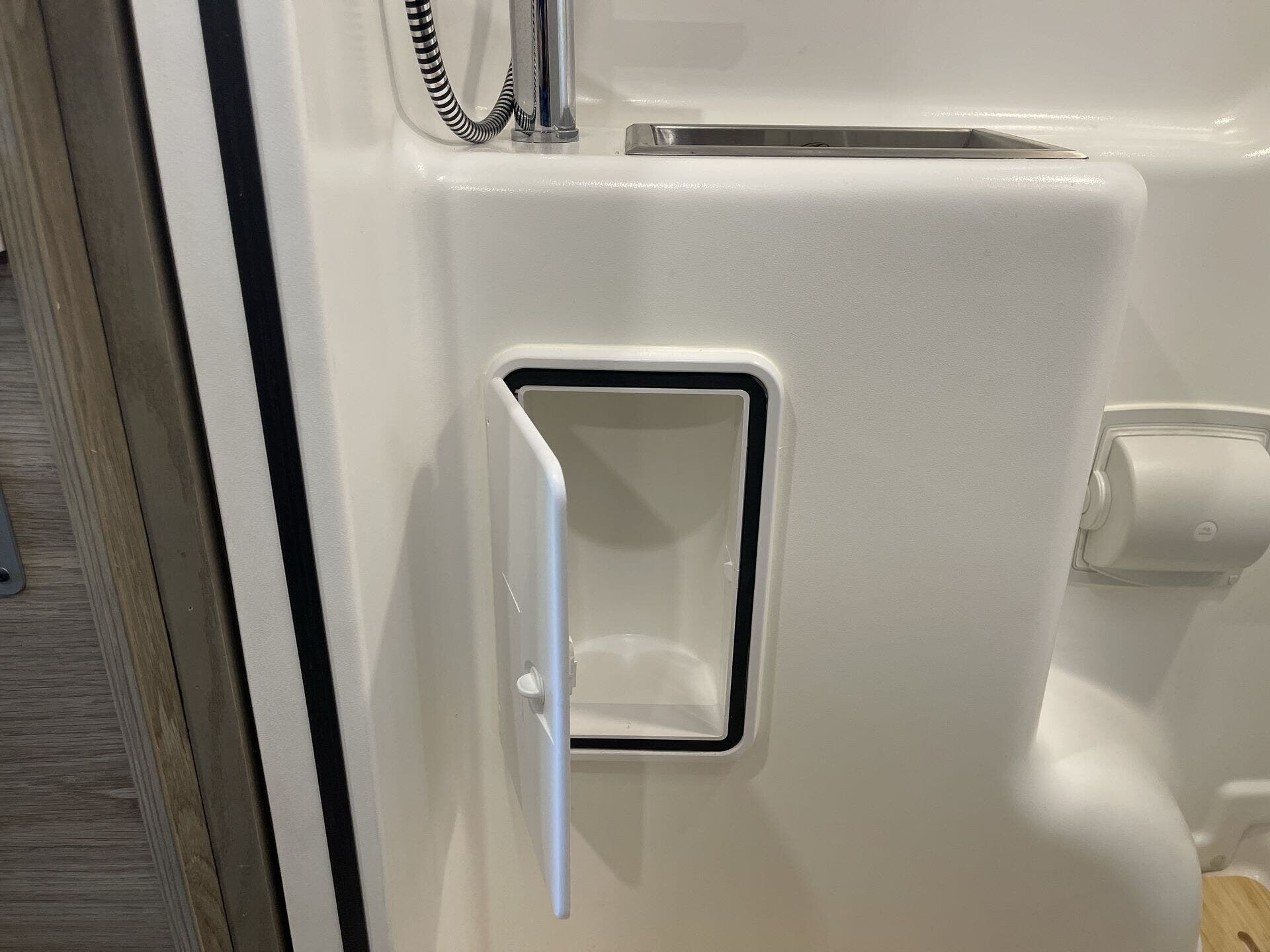 Day/Night Shades, Medicine Cabinet, Overhead Cabinetry, Pantry, Shower, Toilet