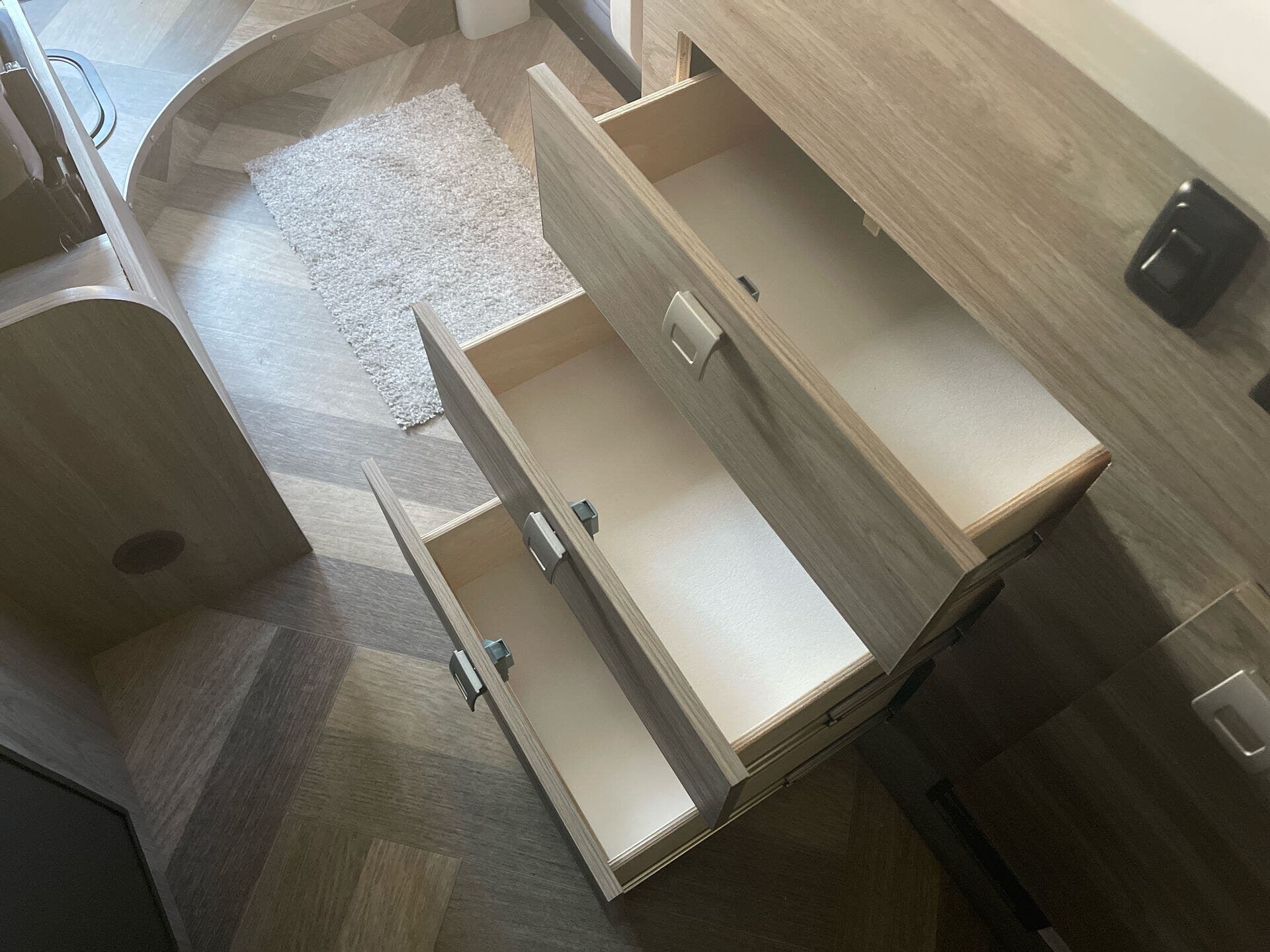 - Fresh water: 18 gallons • Grey water: 14 gallons • Black water: 11 gallons