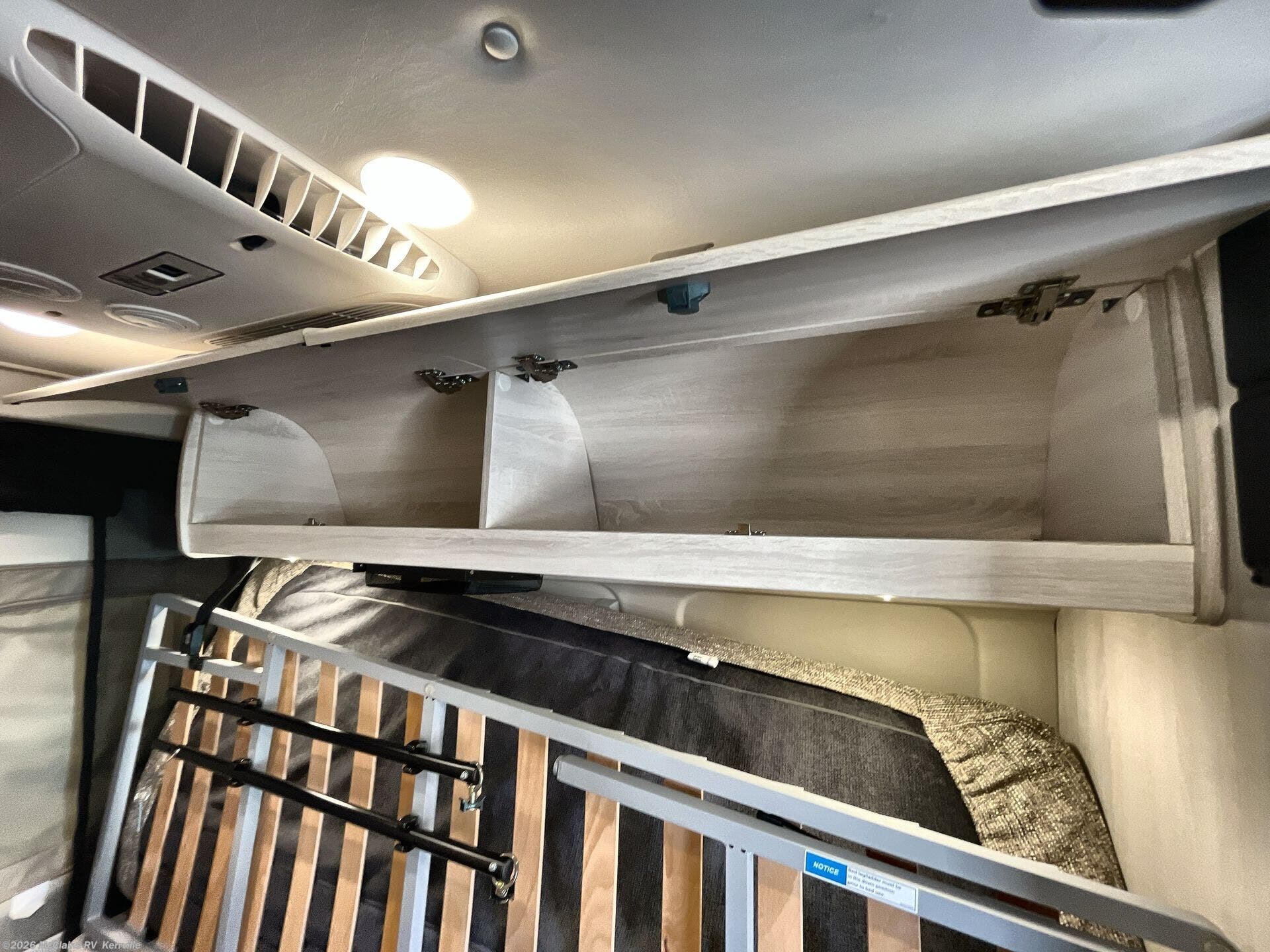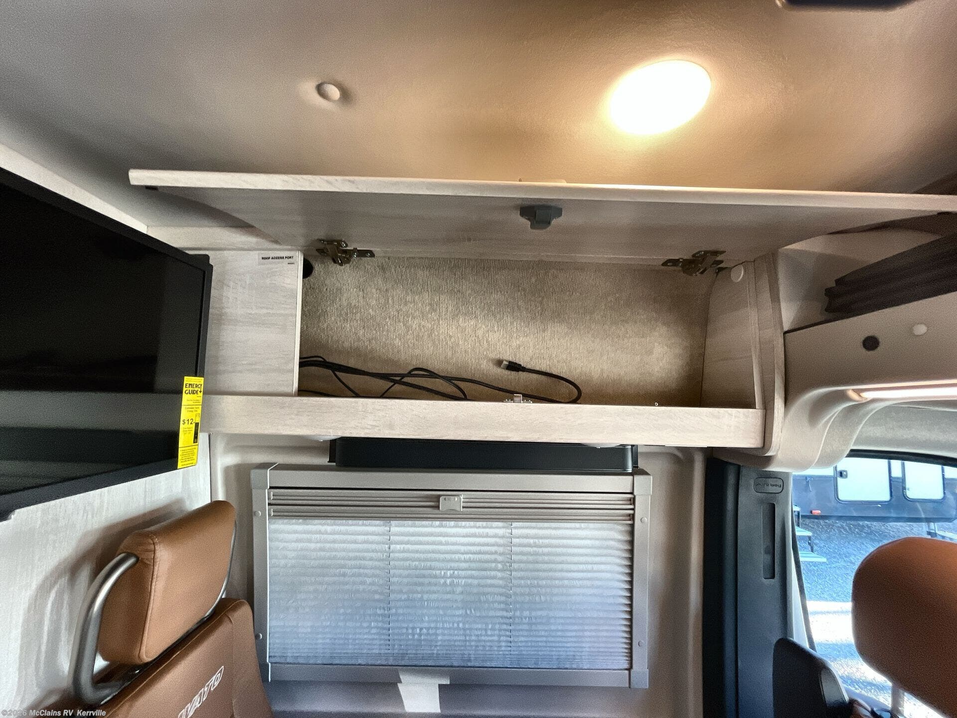 - Comfort-focused features like TV, day/night shades, and overhead cabinets