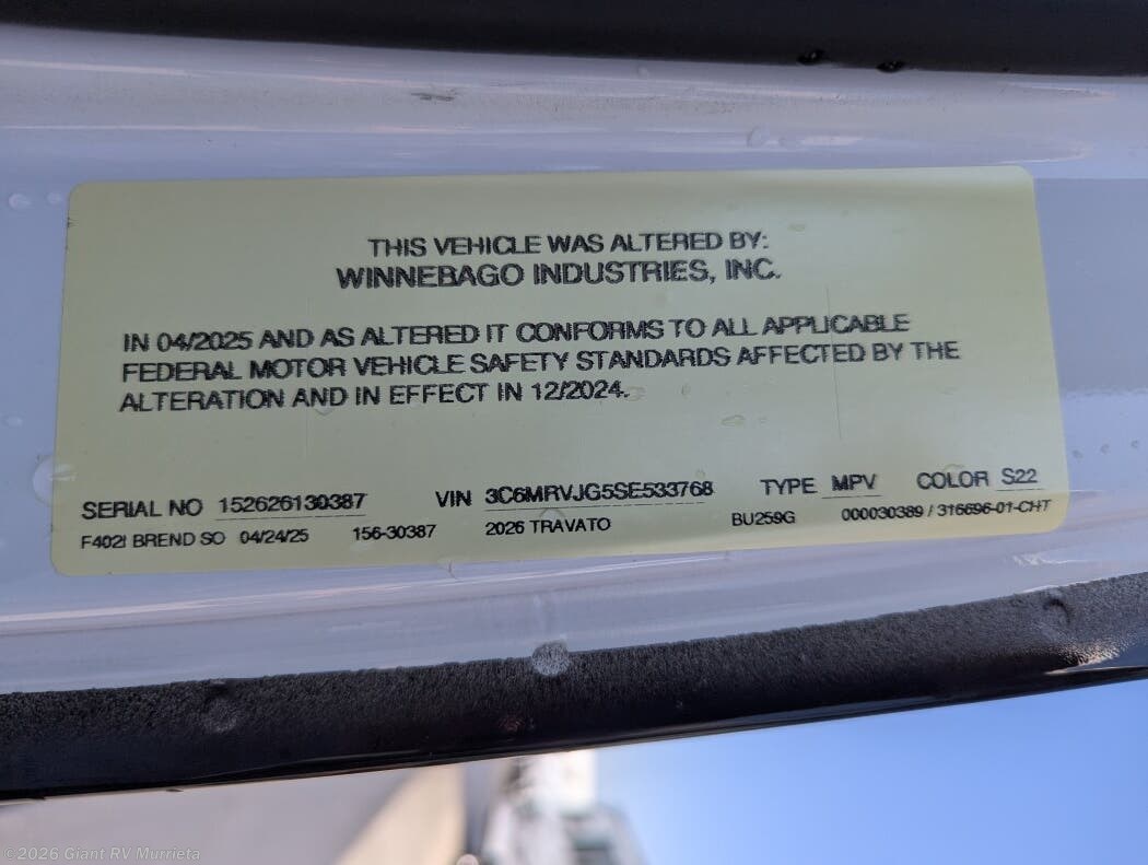 Request More Info on this 2026 Winnebago Travato 59G Offered for sale by Giant RV