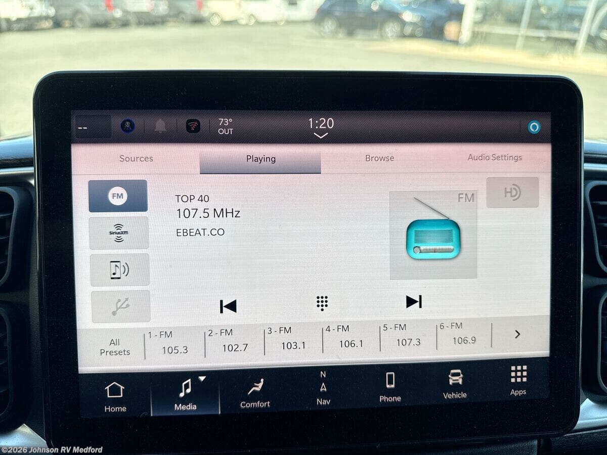 Features Include: 3.6L V6 Gas Engine, 280 HP, 180-Amp Alternator, 4-Wheel ABS Brakes, Fog Lamps, Crosswind Assist, Traffic Sign Assist, Cab Features, Power Windows, Push Button Start, Applique Package, Living Spaces, Soft Vinyl Ceiling, Tinted Coach Windows, Below Floor Storage, Rear Screen Door, Dinette Seating, Pantry, Spice Rack, Corian Countertops, Countertop Extension, Microwave Oven (59G), Electronics, Systems Center, USB Ports Sleeping, Medicine Cabinet, Bathroom Mirror, Linen Storage, Shower Package, Flexible Showerhead, NPF Graphics, Thermal Cab Shades, 245w Solar Panels, 2.8 Gas Generator, 245w Solar Panels, 3600w Inverter, Inverter Charger, Bluetooth Control, 10-Foot Sewer Hose, Outdoor Wash Station