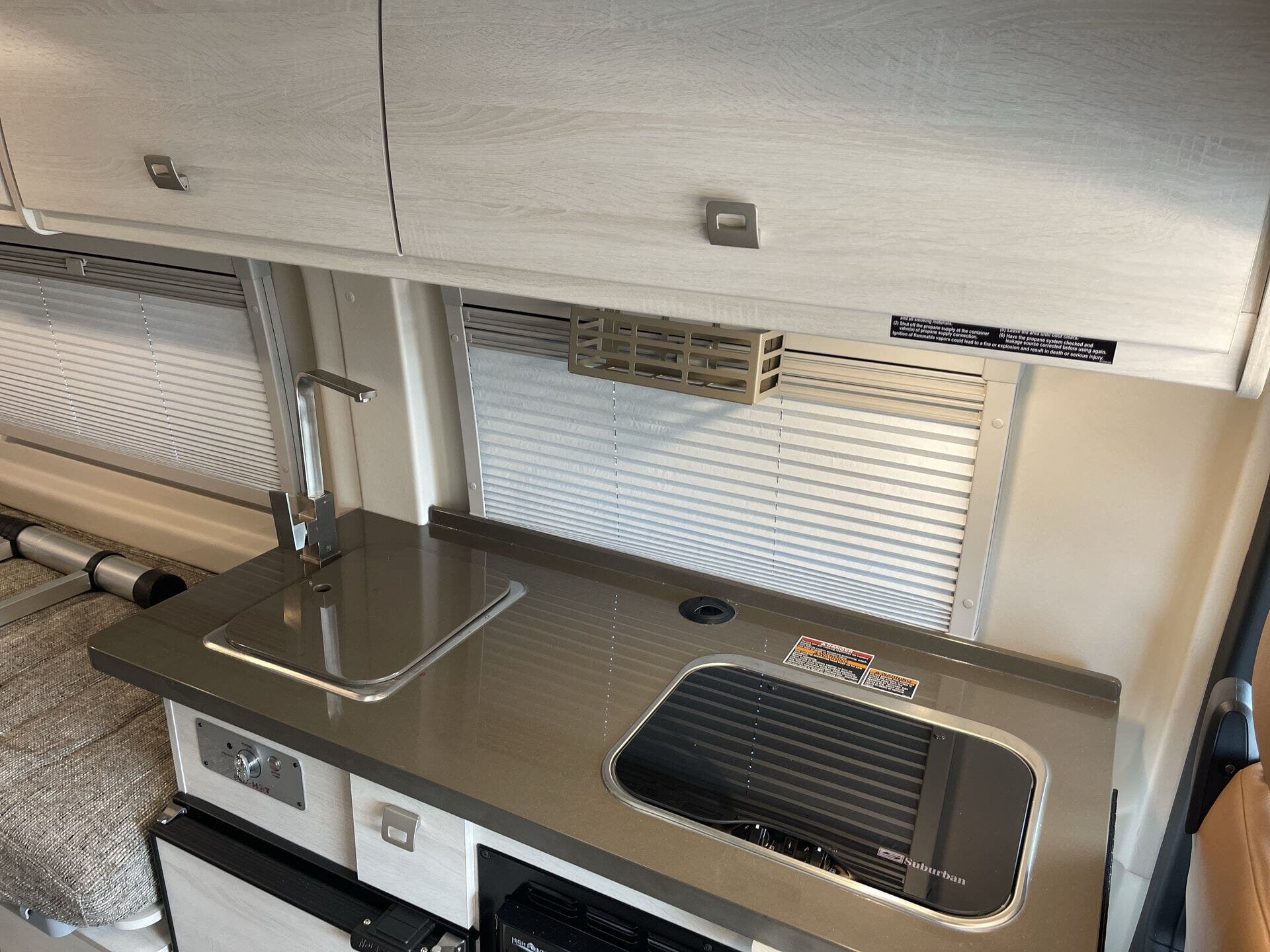 With sleeping arrangements for up to 2 people, the Travato is ideal for couples seeking a weekend getaway or a long-term journey. The RV is equipped with a fresh water capacity of 18 gallons, a black water capacity of 12 gallons, and a grey water capacity of 13 gallons, ensuring you have everything needed for extended trips away from home.