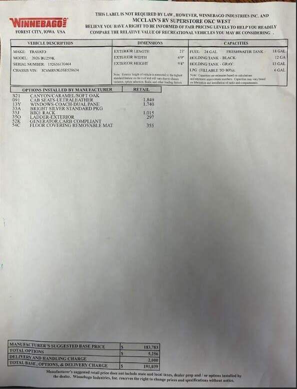 Request More Info on this 2026 Winnebago Travato 59K Offered for sale by McClain's RV Oklahoma City