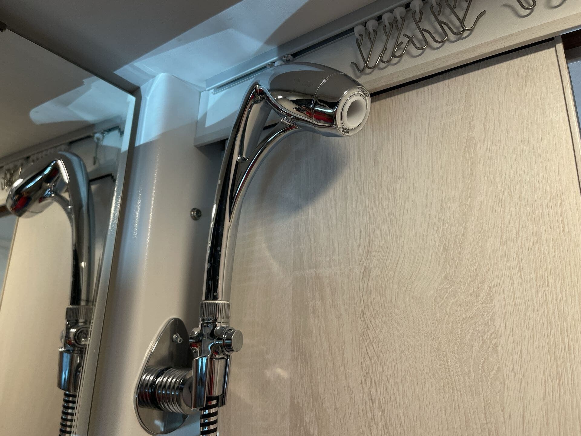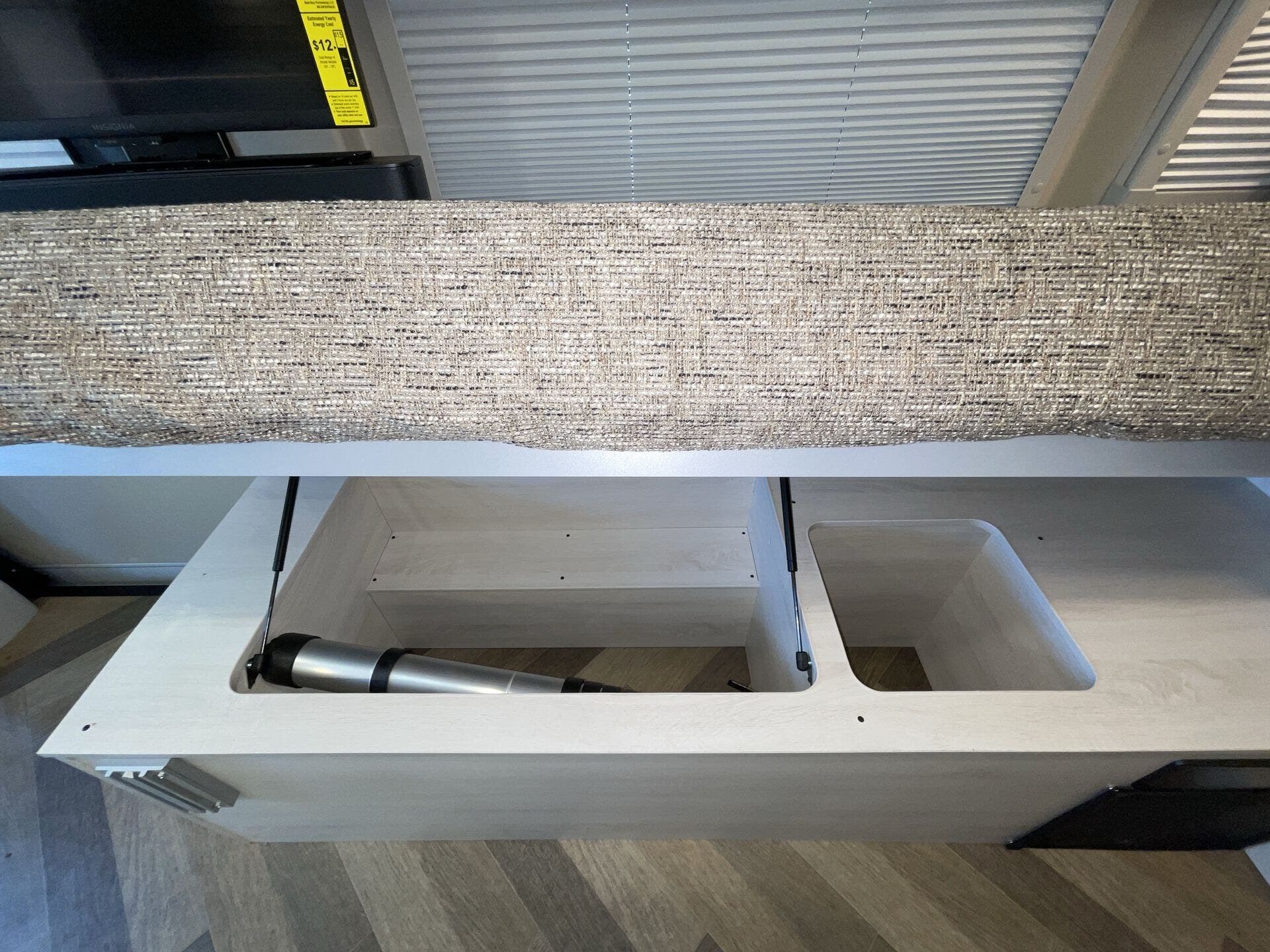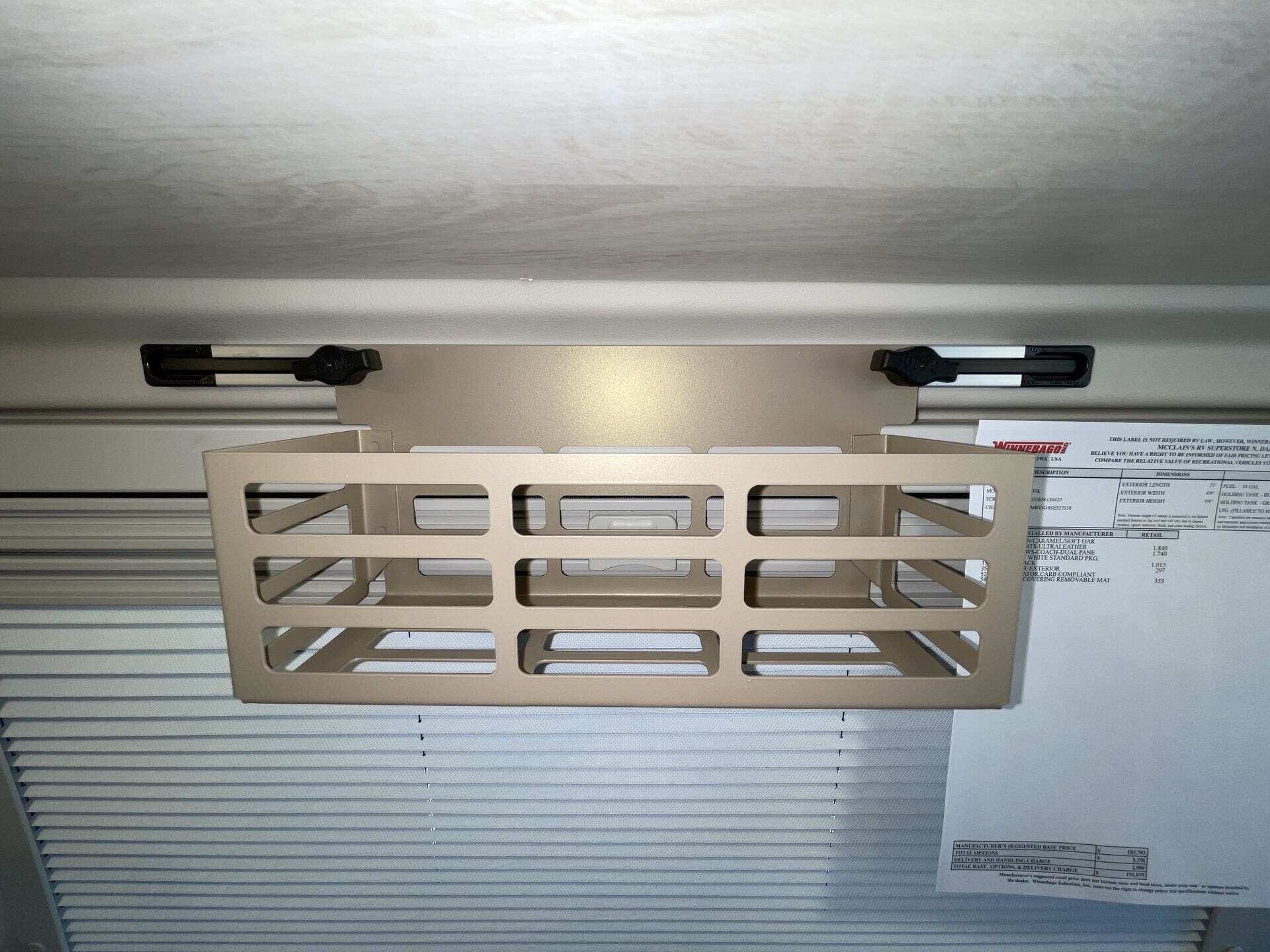 Day/Night Shades, Kitchen Sink, Medicine Cabinet, Overhead Cabinetry, Removable Table, Shower, Toilet
