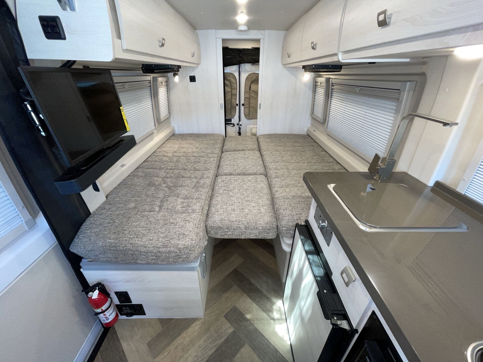 The Winnebago Travato offers a thoughtfully designed interior suited for modern travelers. Although specific details about interior amenities are not listed, the model typically includes features like a compact kitchenette, comfortable sleeping arrangements, and essential amenities for a comfortable living space on wheels. Its lightweight build and efficient layout make it an excellent choice for exploring urban centers or remote locations alike.